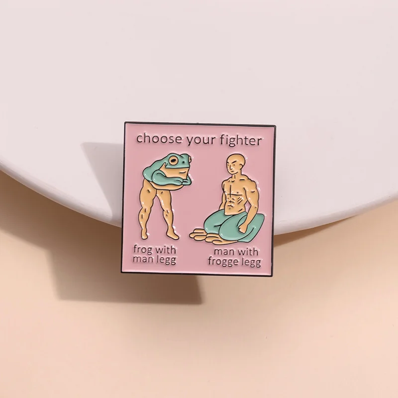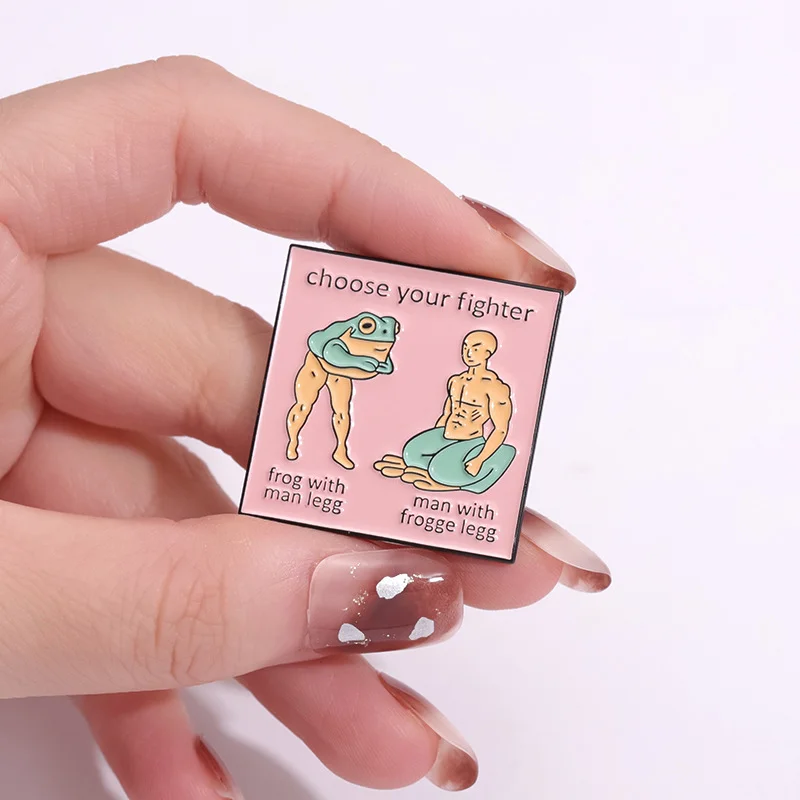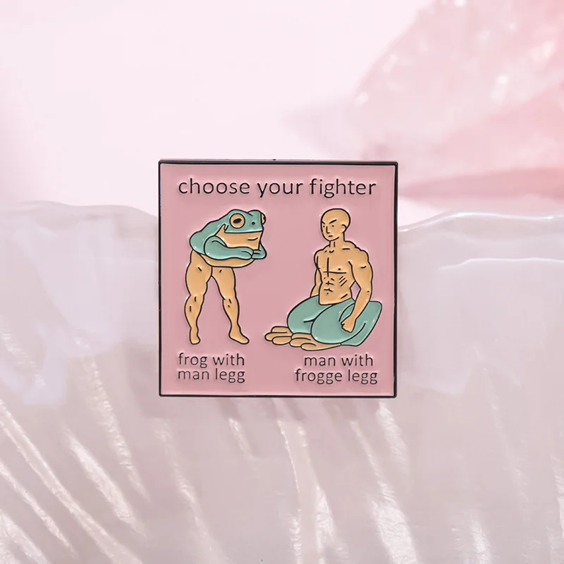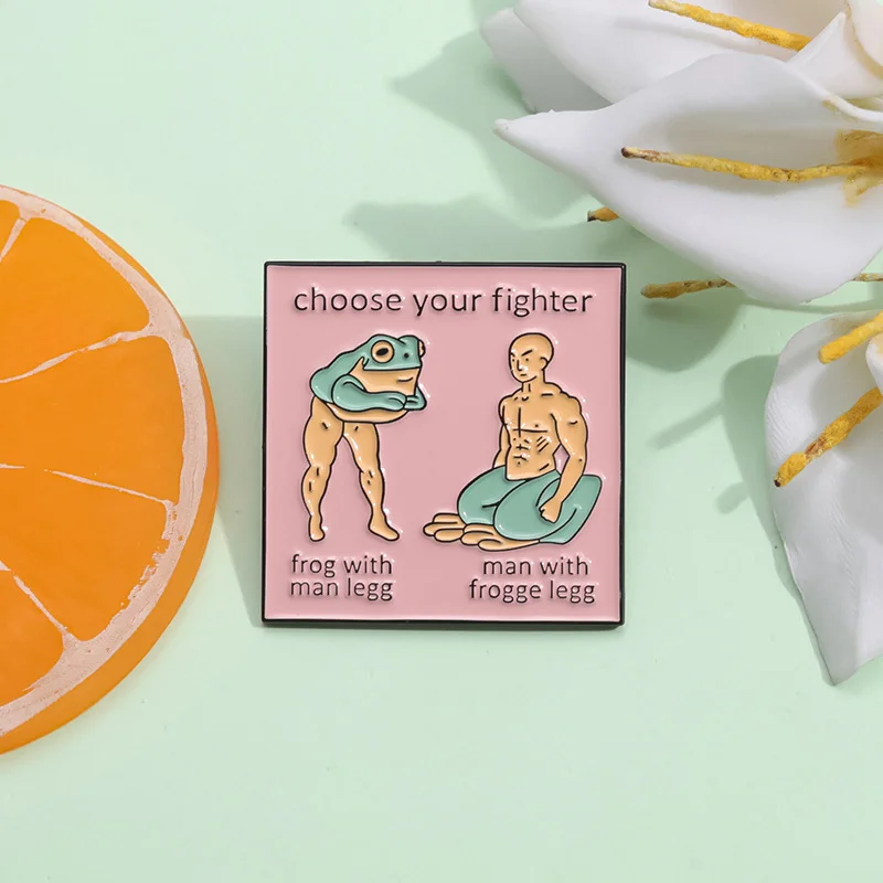 Choose Your Fighter Frog with Man Legg Man,withfrogge Legg Cartoon Metal Badge Enamel Pin Creative Funny Frog and Man Clothing Accessories Brooch