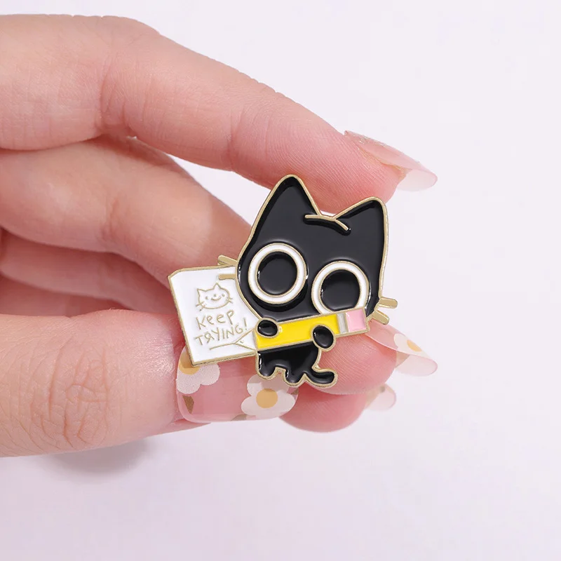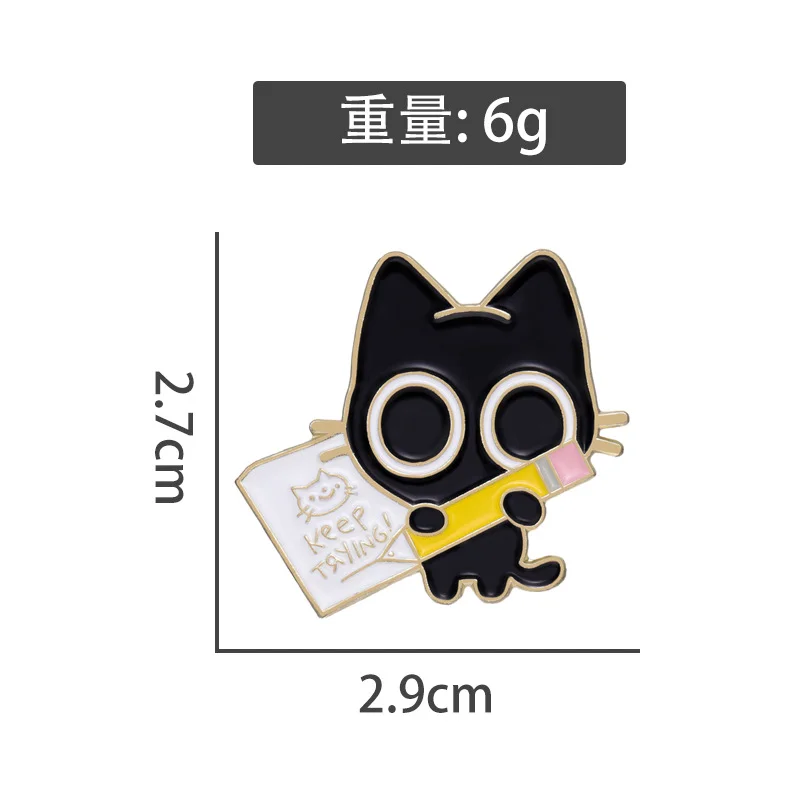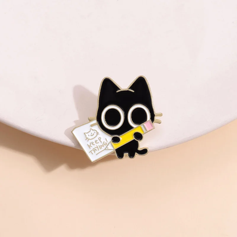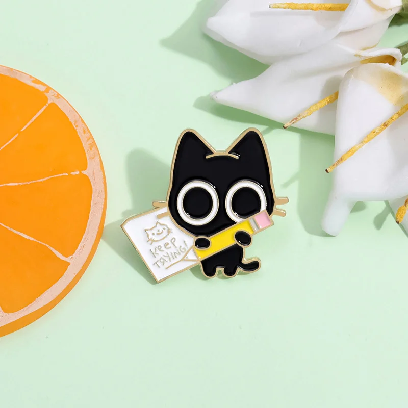 Cute Cartoon Anime Animal Cat Enamel Pin Brooch Little Black Cat Holding Color Pen Metal Badge Pin Accessories Wholesale