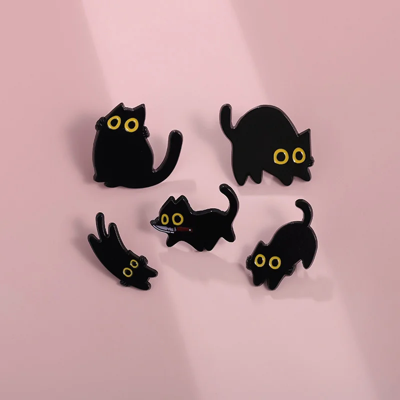 Cute Pure Black Kitten Metal Enamel Pin Brooch Animal Badge Clothing Accessories Collar Pin Animal Decorative Corsage Wholesale