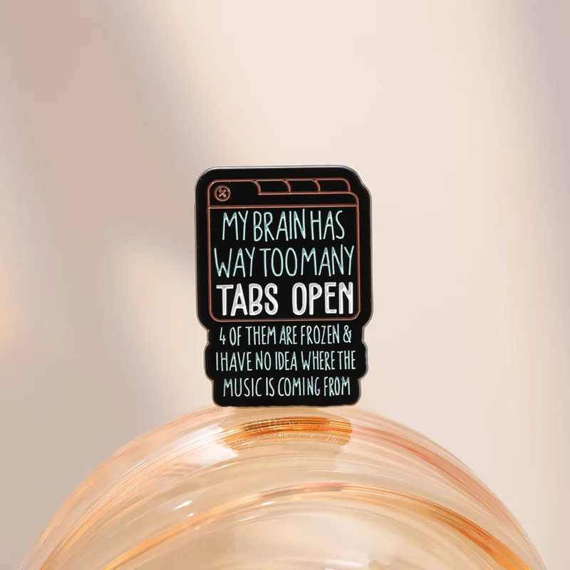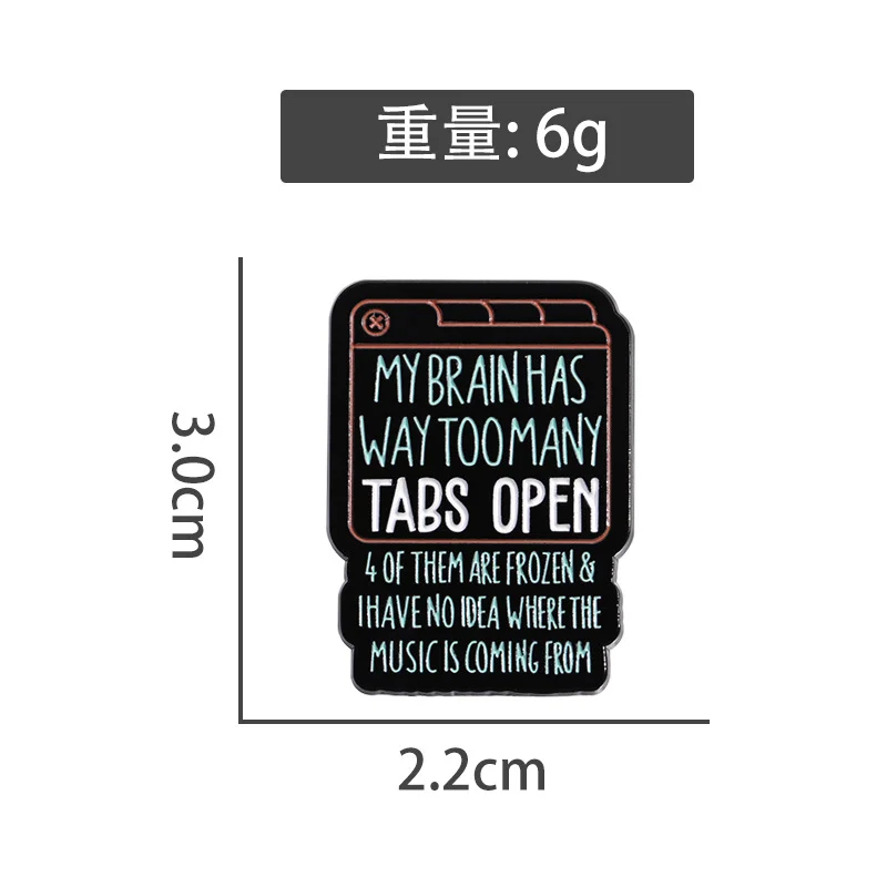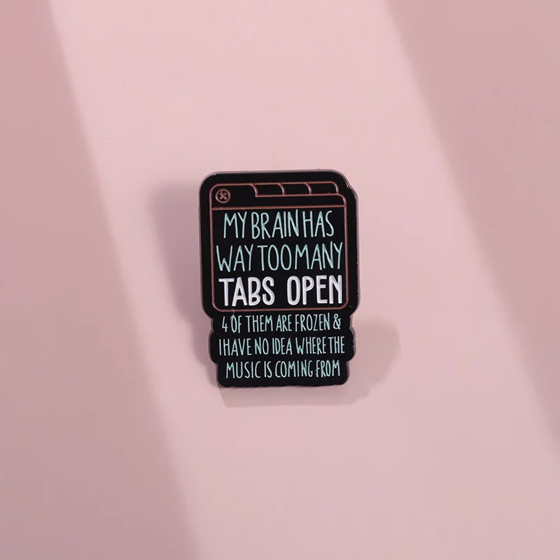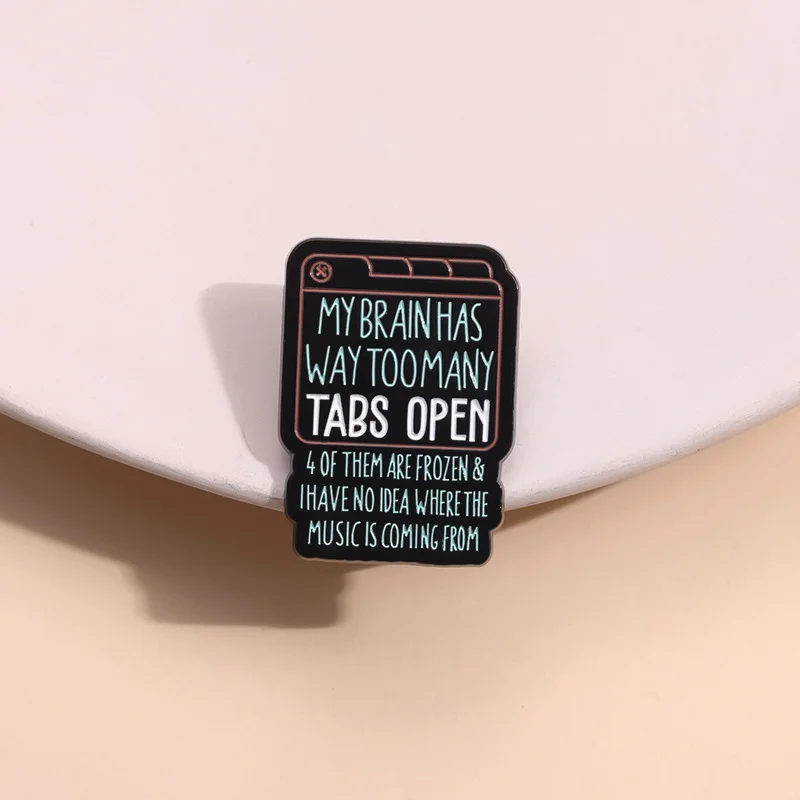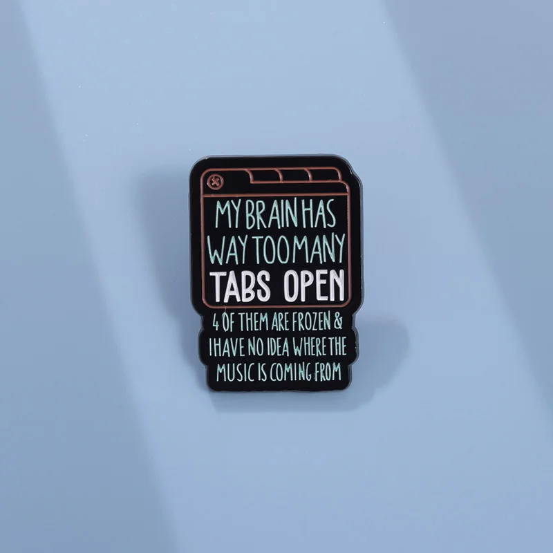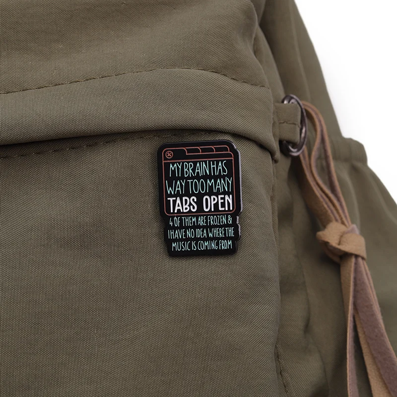 Green English Text Enamel Pin Brooch MY BRAIN HAS WAY TOO MANY TABS OPEN From Funny and Versatile Exquisite Clothing Accessories