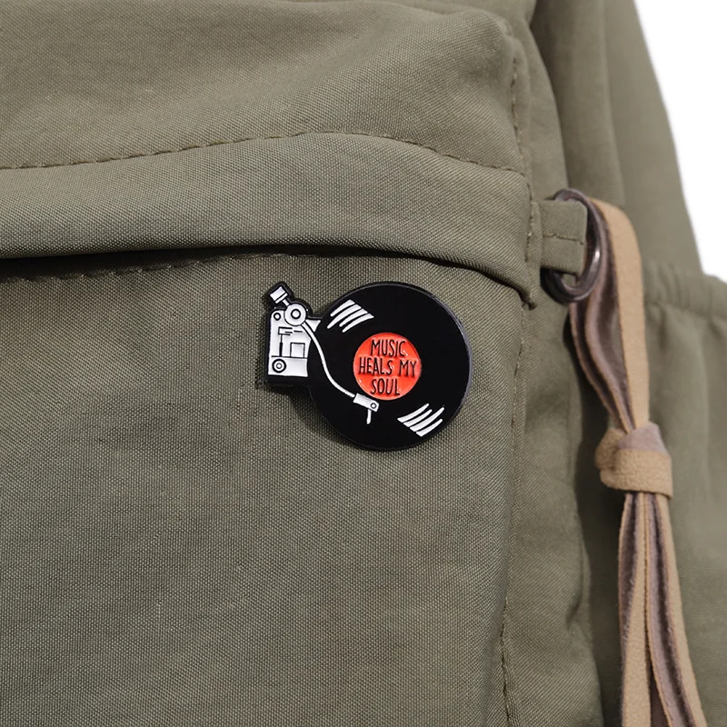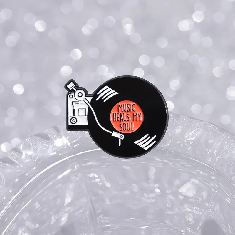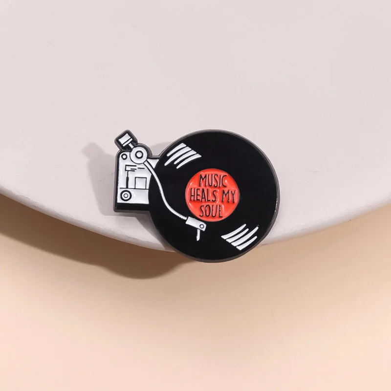 Vinyl tape enamel pin brooch black round geometric music clothing accessories collar pin female singer corsage