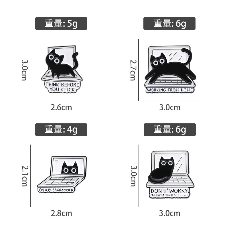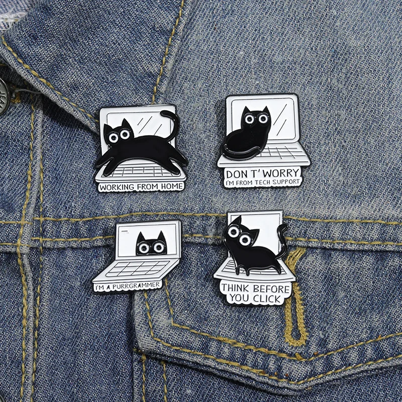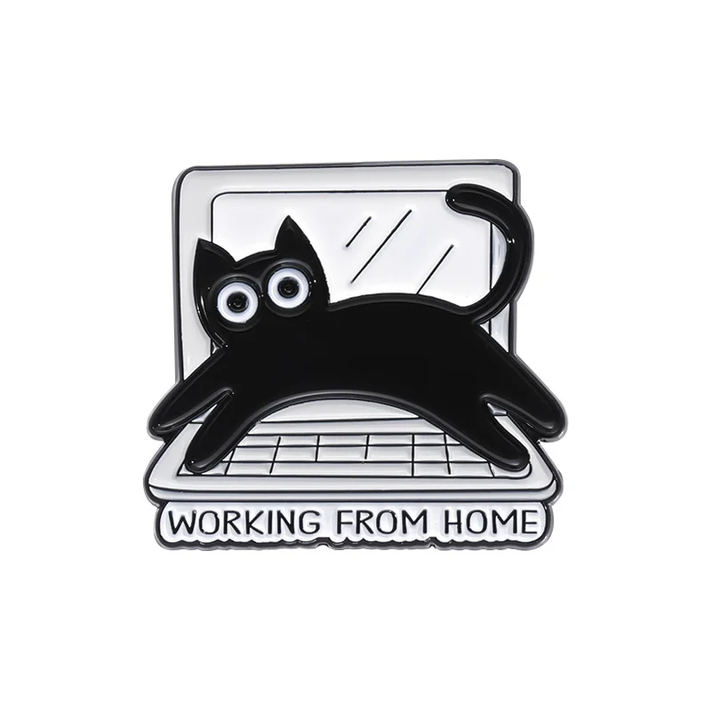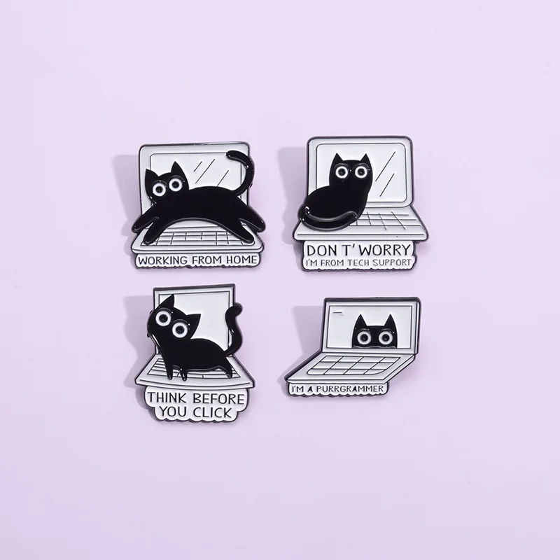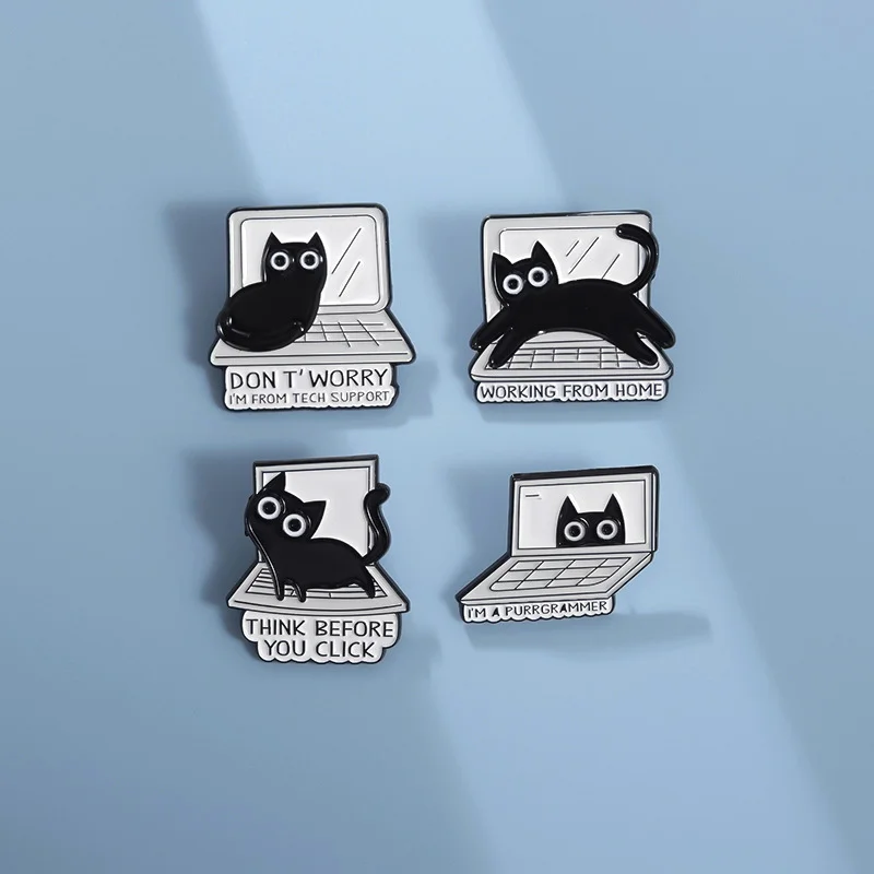 Black Cute Animal Metal Enamel Pin Brooch Kitten Pet Sweet Computer Keyboard Creative Badge Wholesale