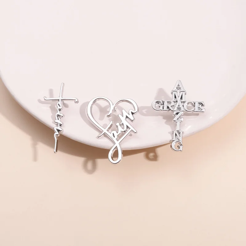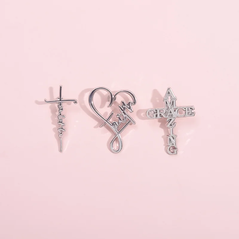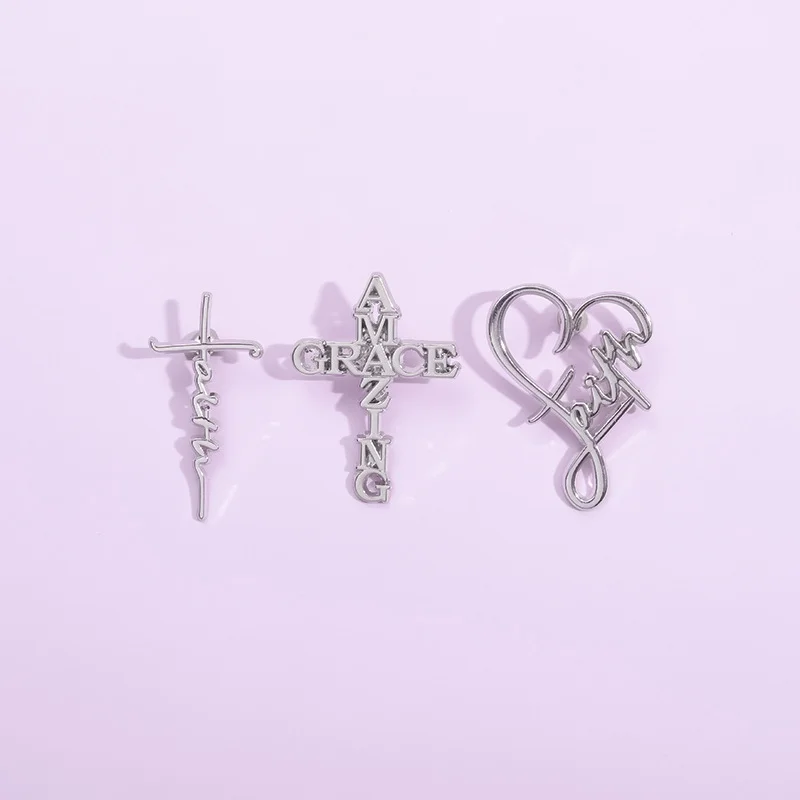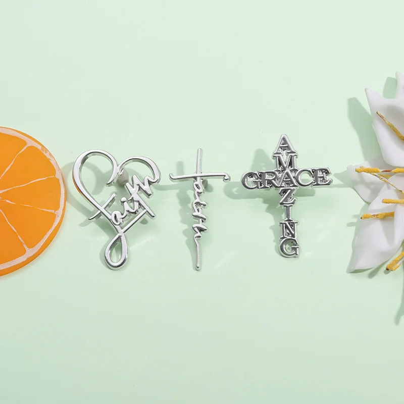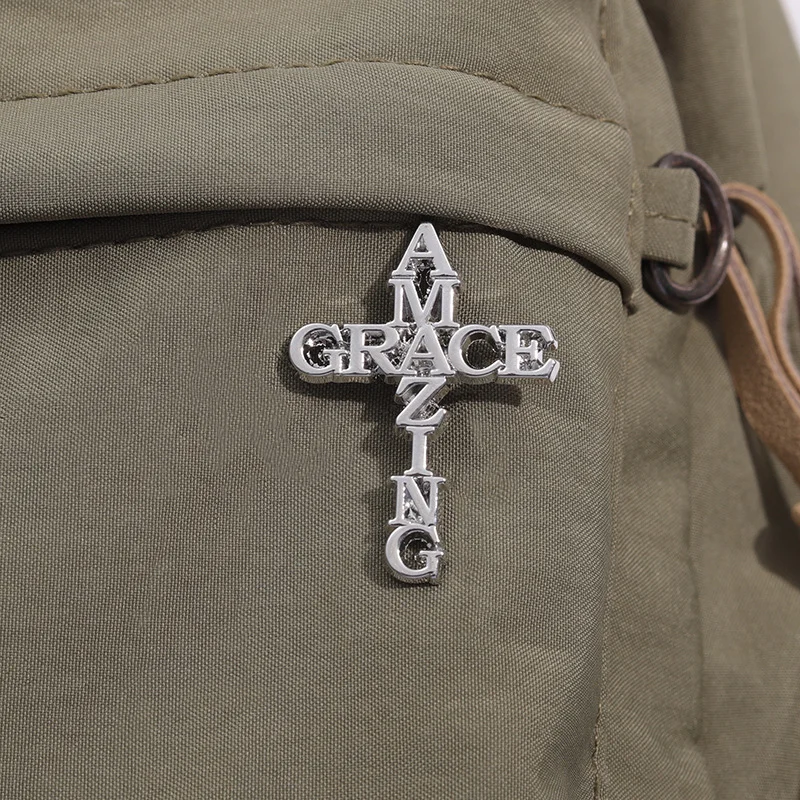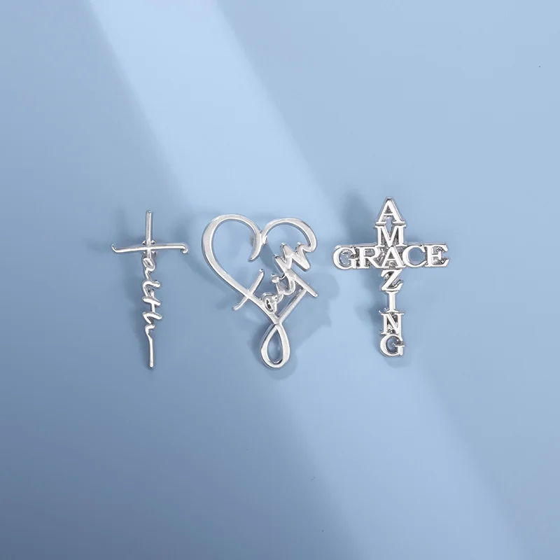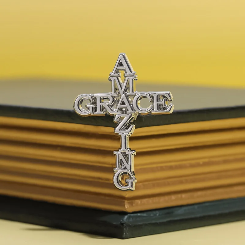 Creative English Punk Style Brooch Metal Enamel Pin Collar Pin AMAZE GRACE Cross Letter Badge Personality Wholesale