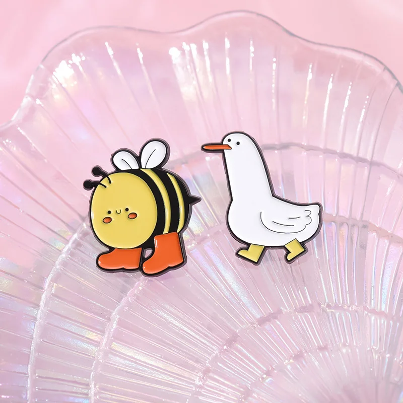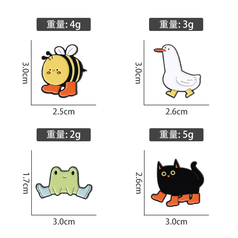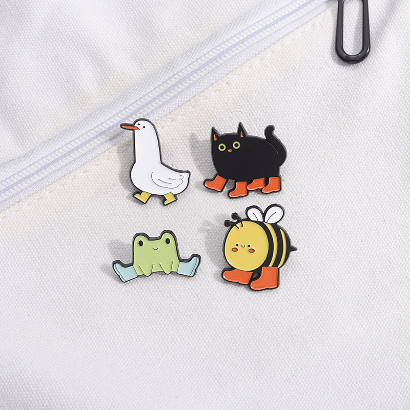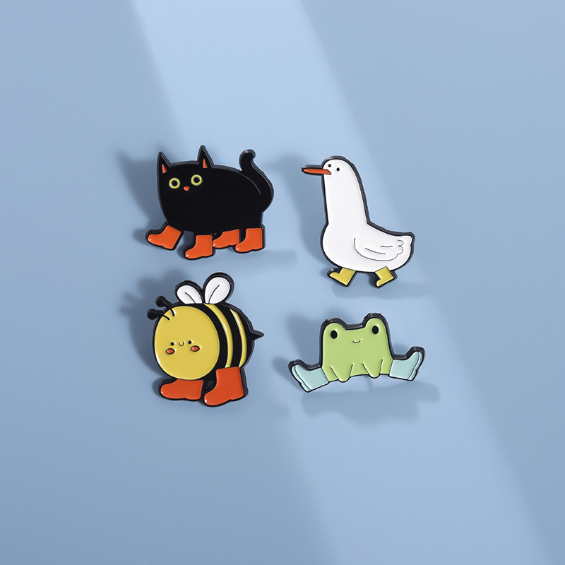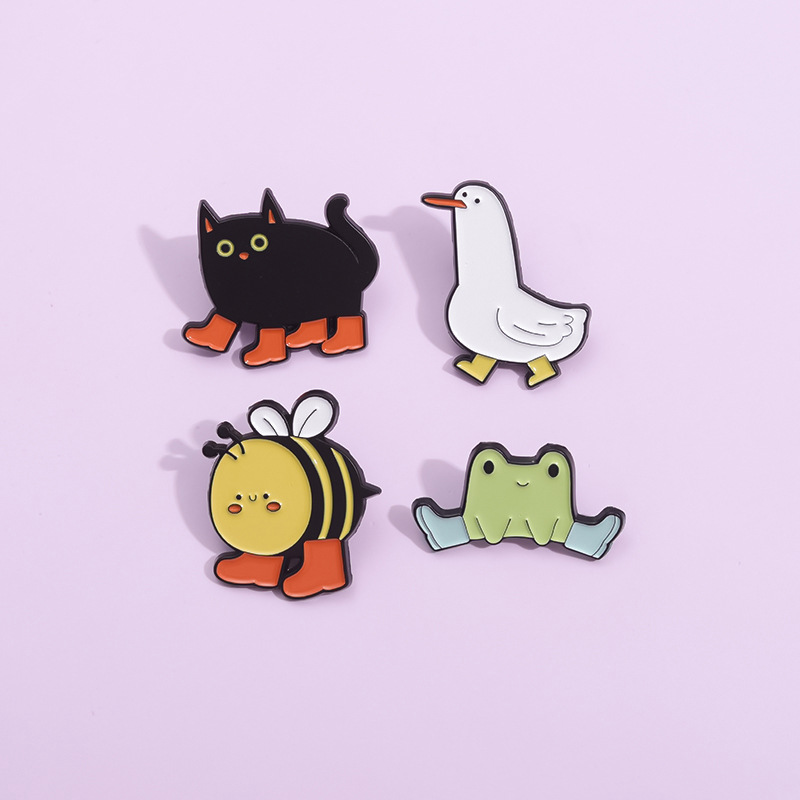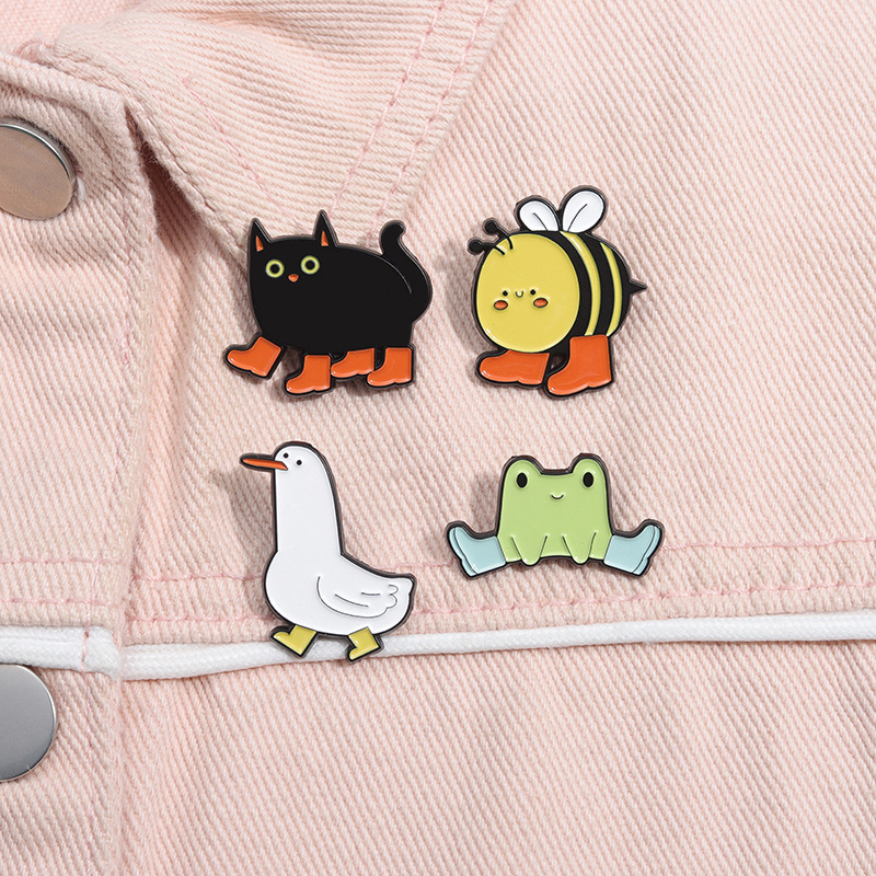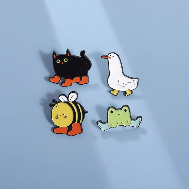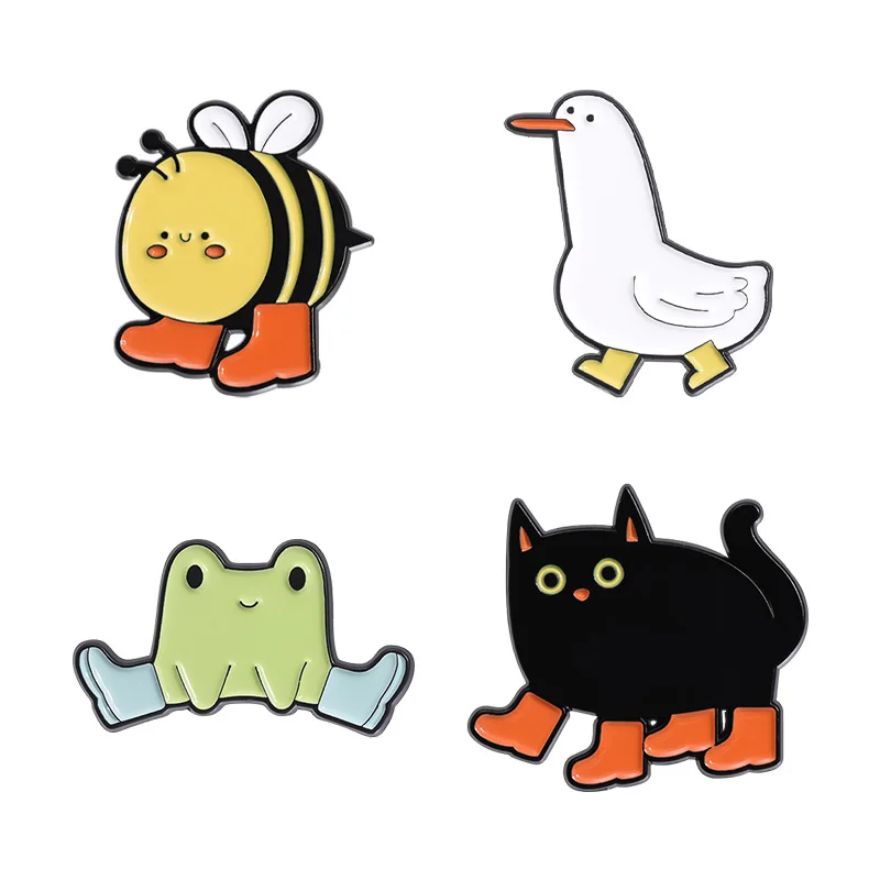 Cute Animal Enamel Pin Brooch Bee Duck Goose Frog Boots Cute Metal Badge Black Cat Exquisite Girl Gift