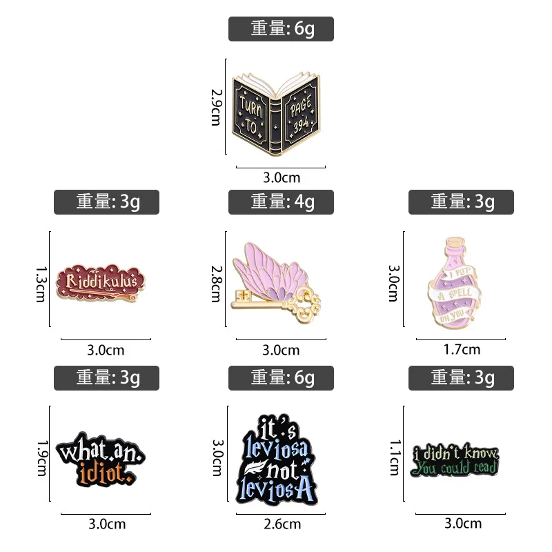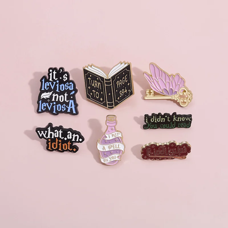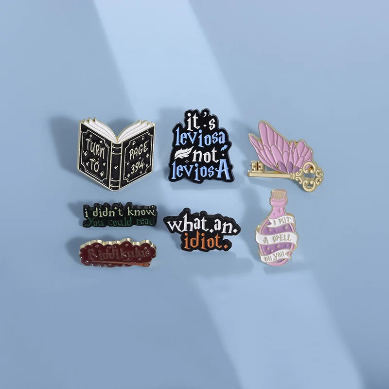 English Book Series Cartoon Brooch Creative Pattern Wishing Bottle Wings Key Clothing Accessories Decoration Badge