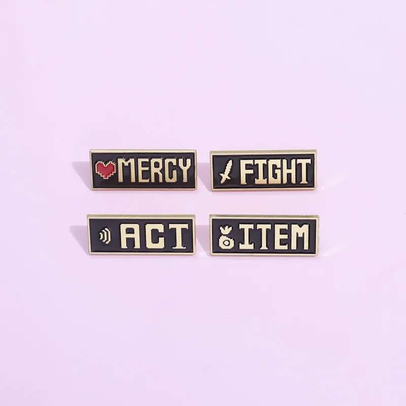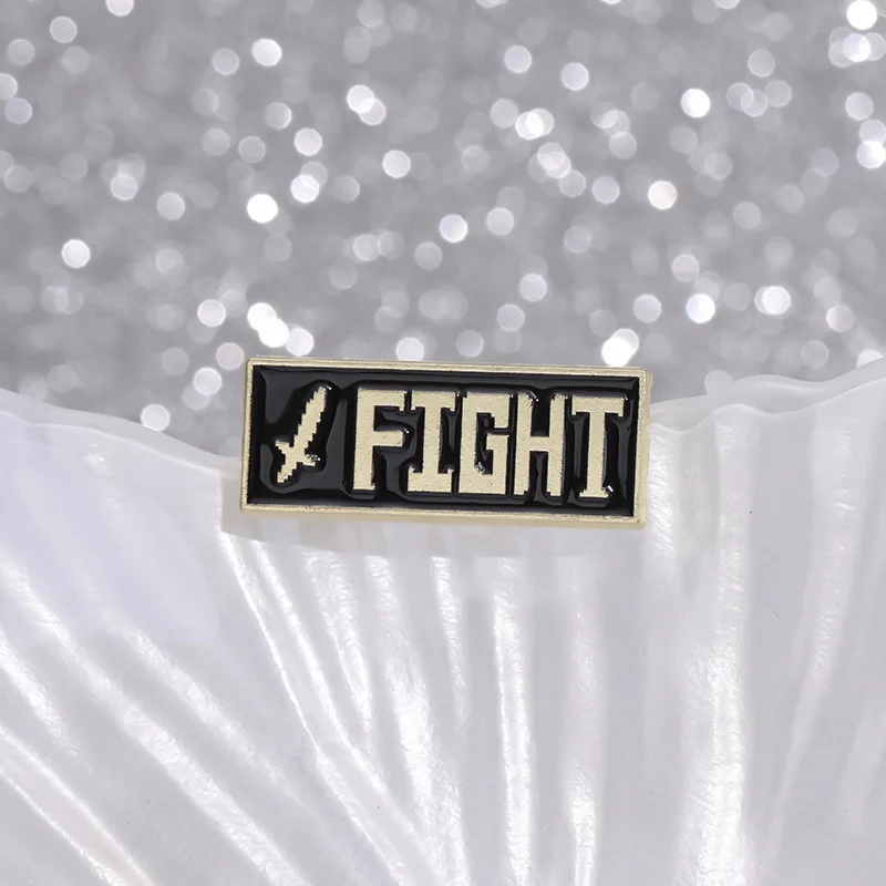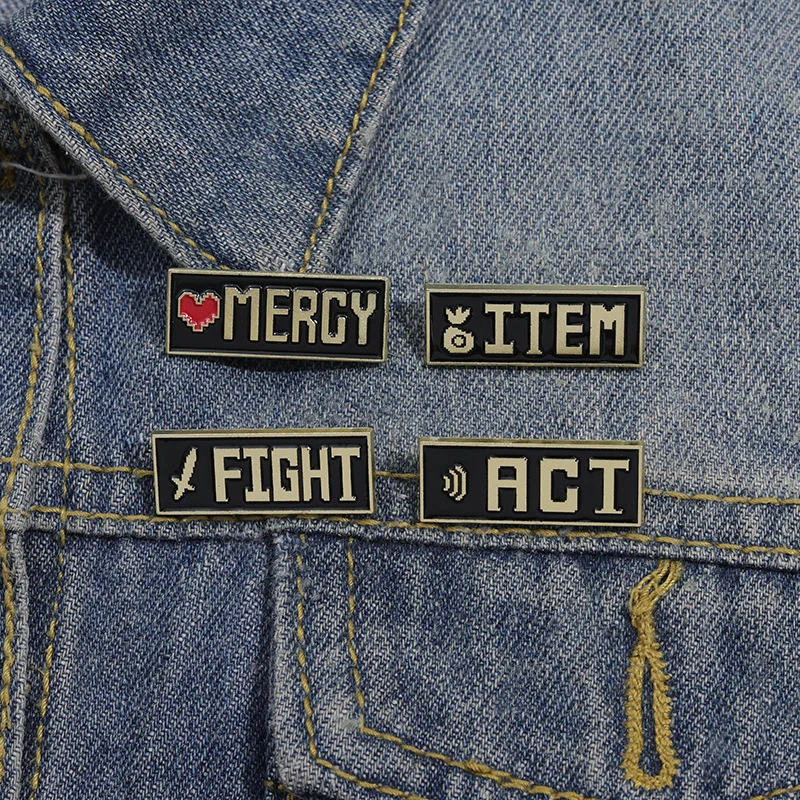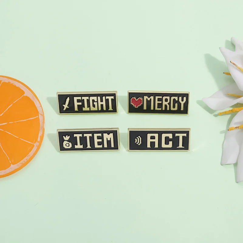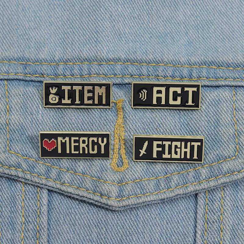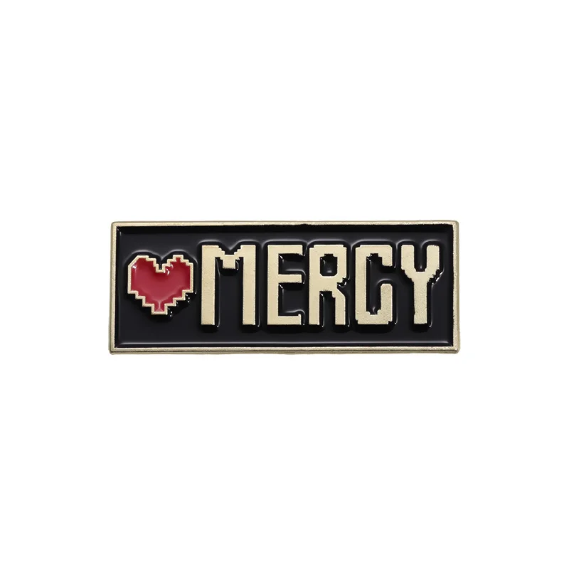 FIGHT ACT ITEM MERCY Text Black Enamel Metal Pin Clothing Accessories Lapel Pin Brooch Metal Badge Wholesale