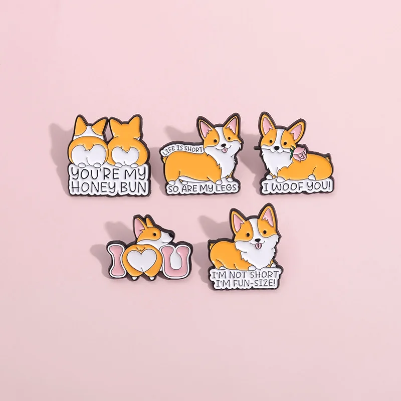 Orange Animal Corgi Dog Metal Enamel Pin Brooch Clothing Accessories Collar Pin Badge Cute Medal Wild Gift