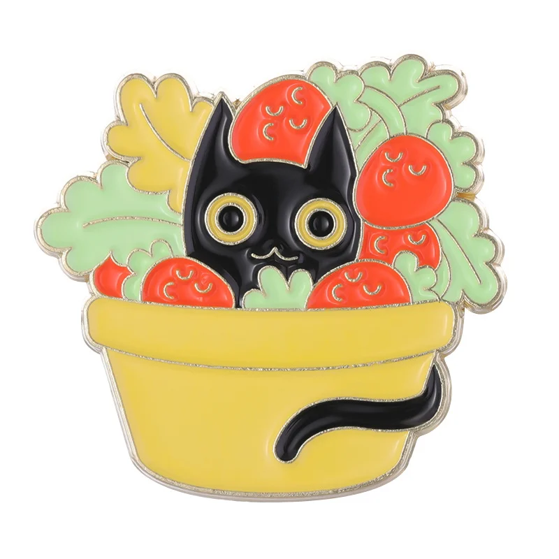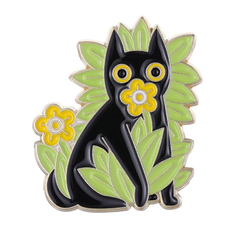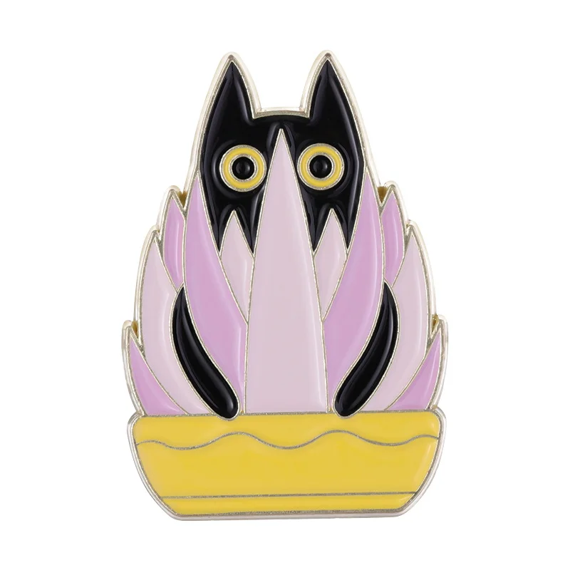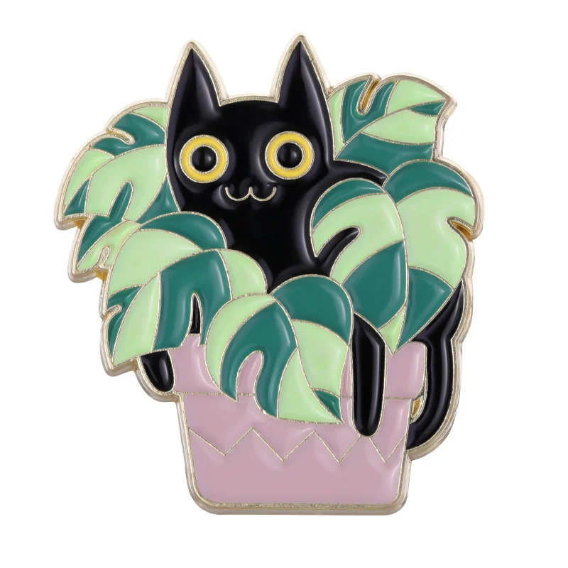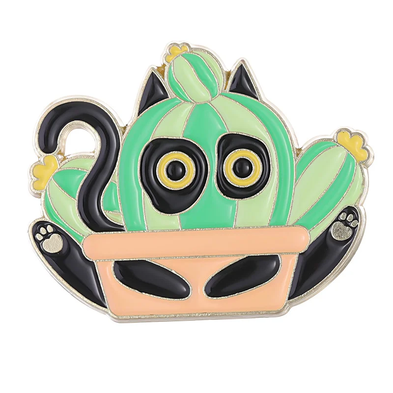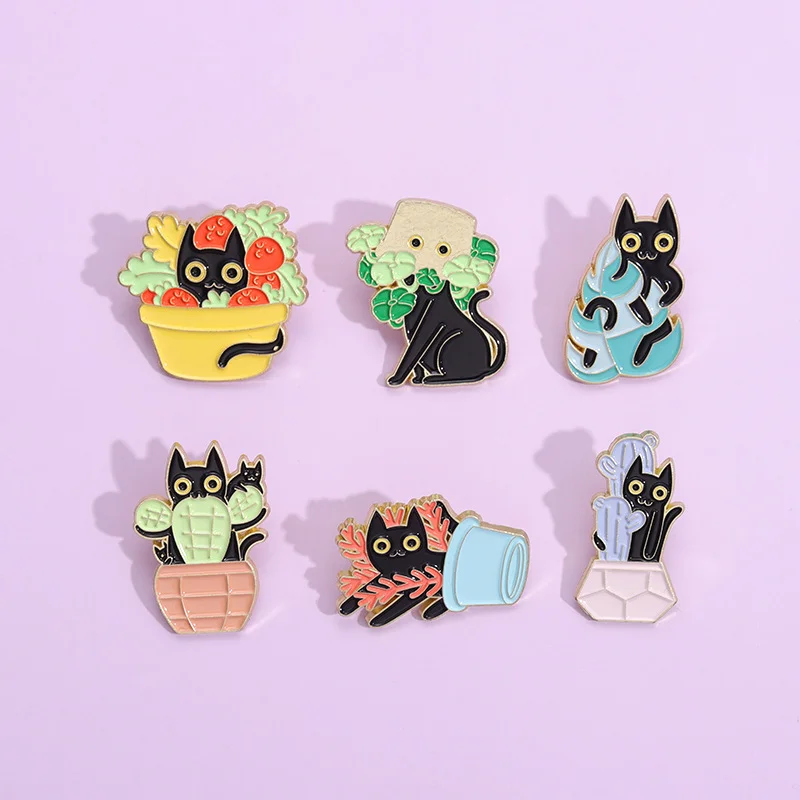 Cute Black Cat Potted Cactus Leaves Flower Enamel Brooch Brooch Plant Metal Badge Collar Pin Brooch Wholesale