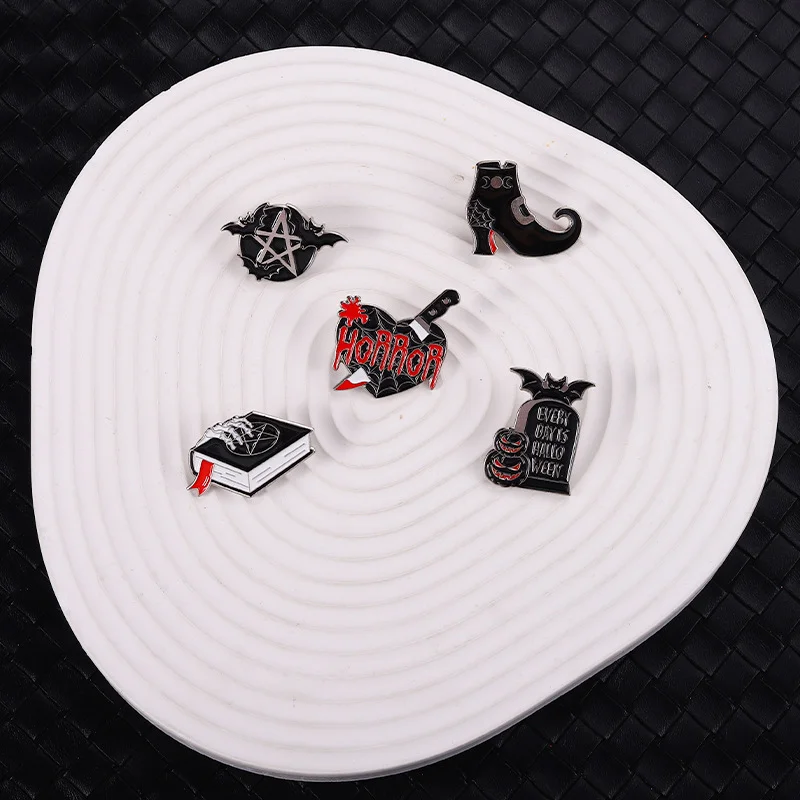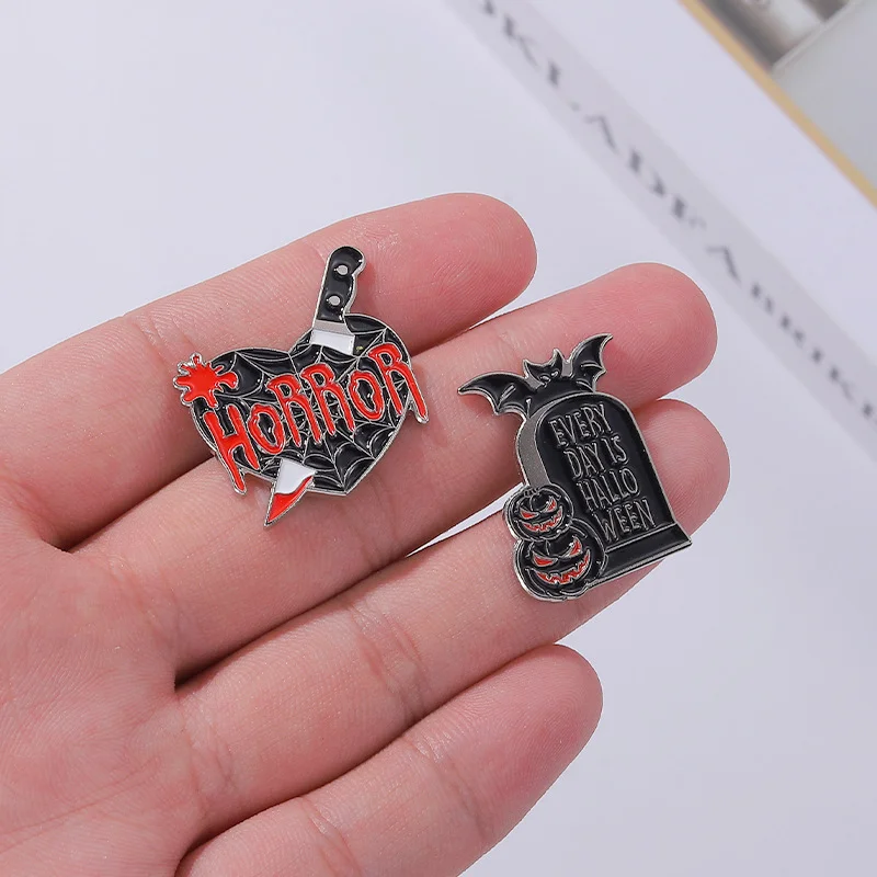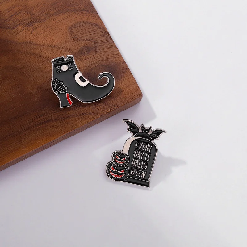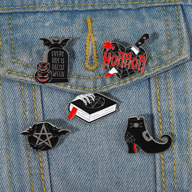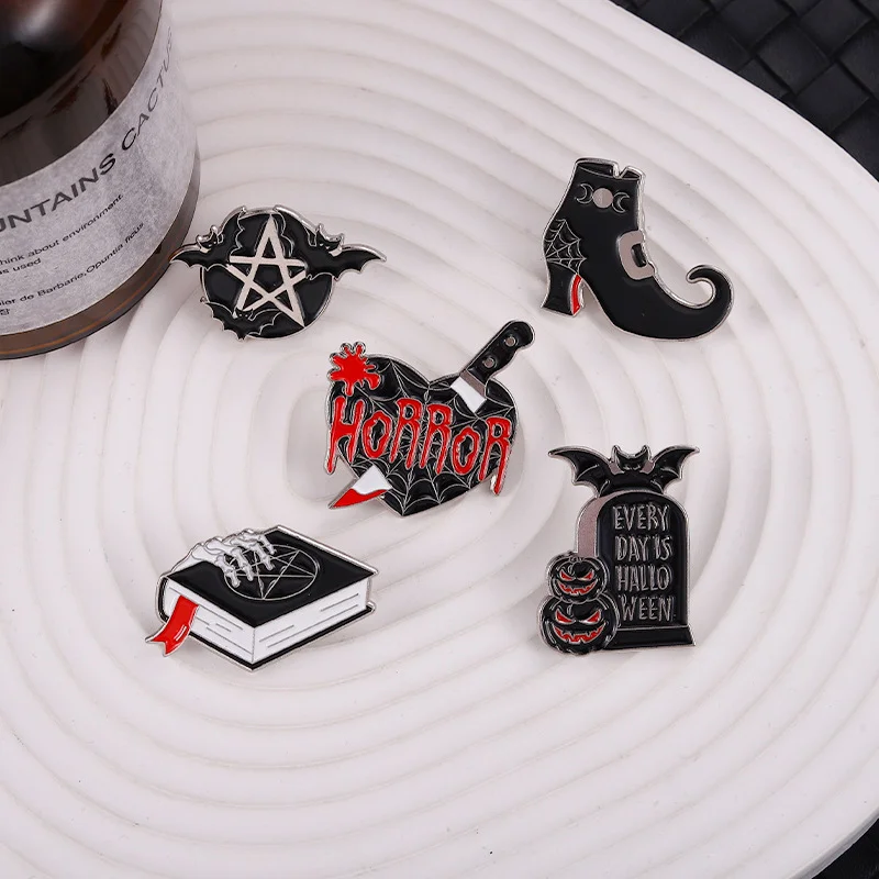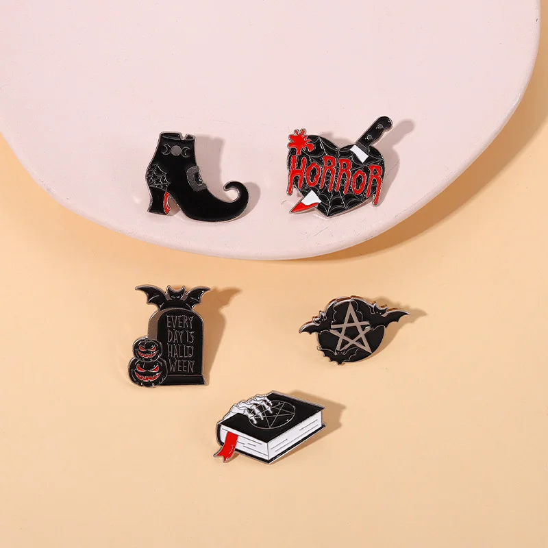 Horror Dark Halloween Brooch Shoes Magic Array Knife Tombstone Punk Metal Badge Book Witch Costume Accessories Wholesale