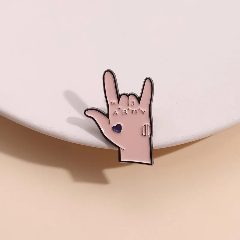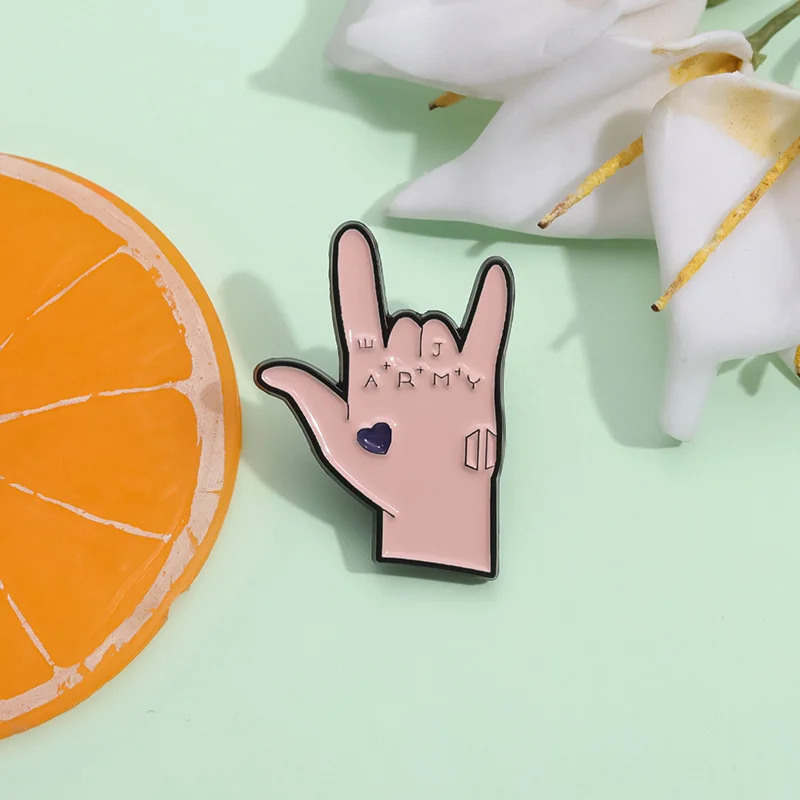 Korean Music Singer Peripheral Commemorative Badges Creative Personality Band Accessories Tattoo Style Rock Gesture Metal Brooch Wholesale