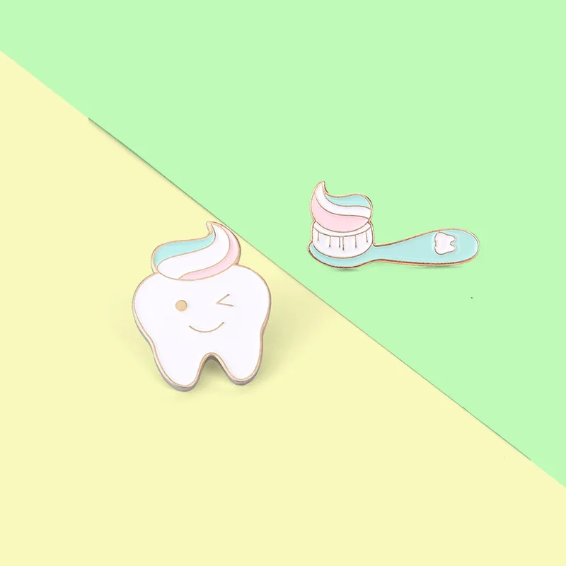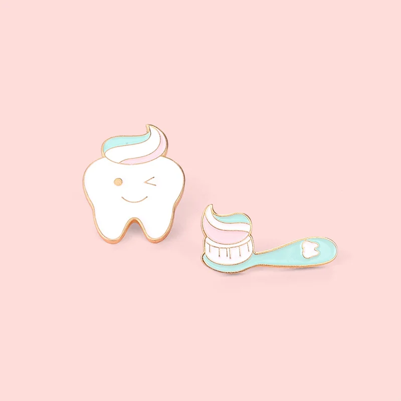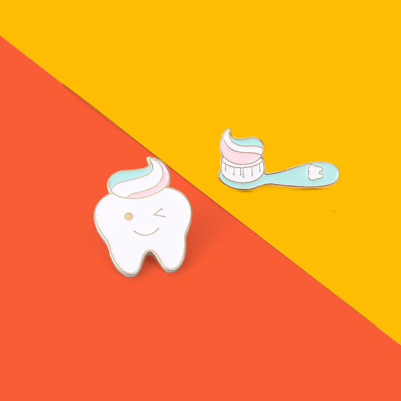 Creative Cartoon Jewelry Badge Clean Toothbrush Toothpaste Brushing Shape Paint Alloy Accessories Brooch Wholesale Spot