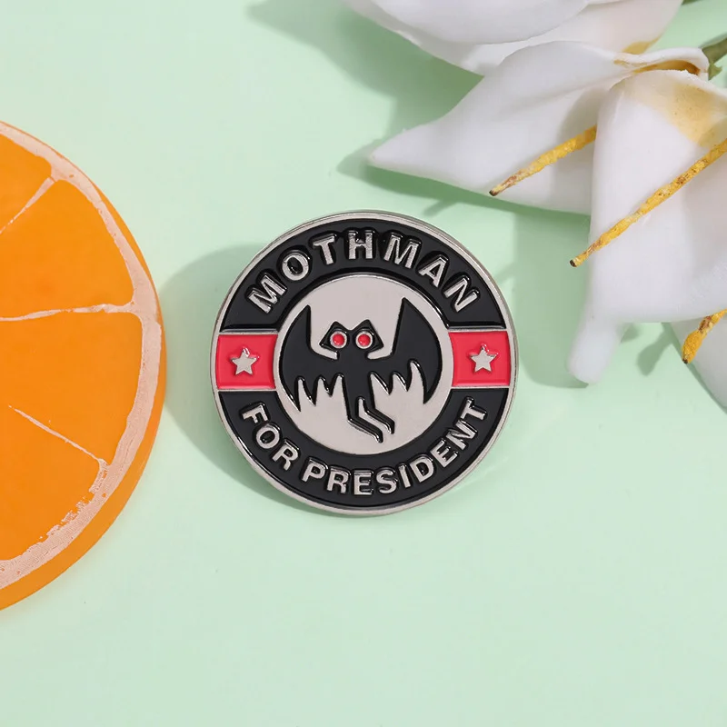 Halloween Card Brooch Round Black Red-eyed Bat Funny Shape Design Creative Animal Enamel Pin Badge