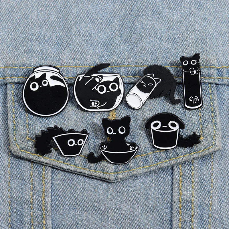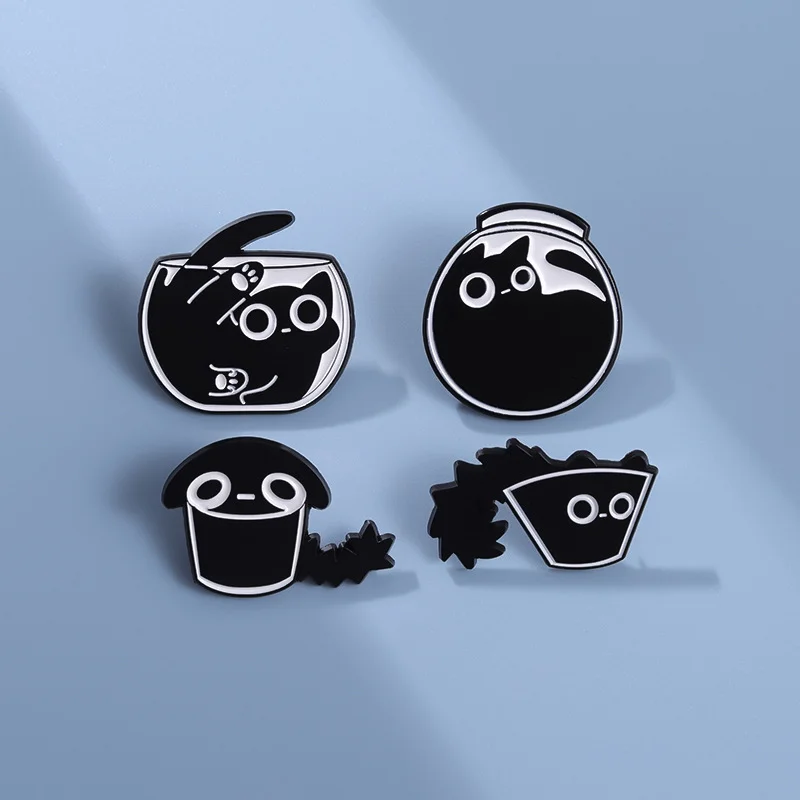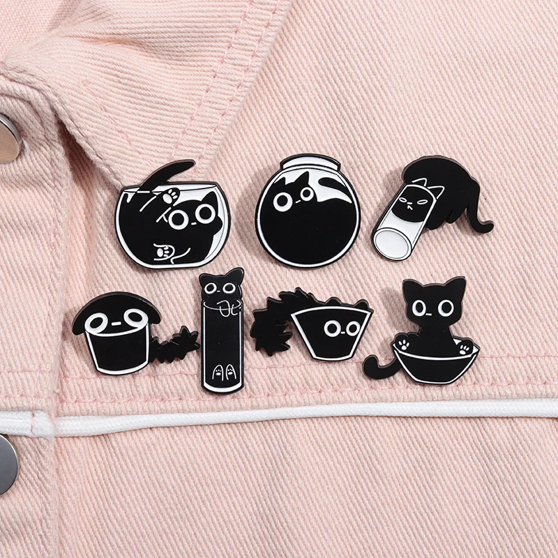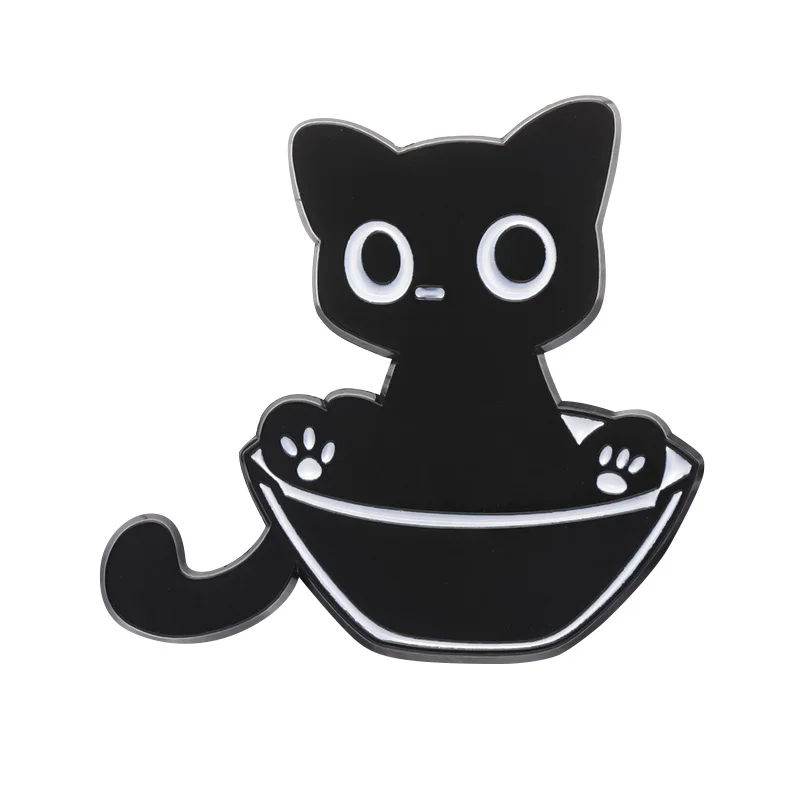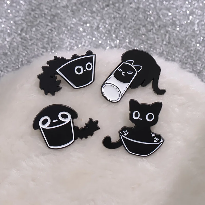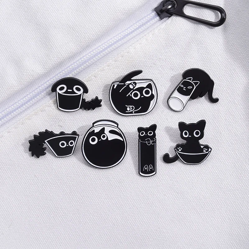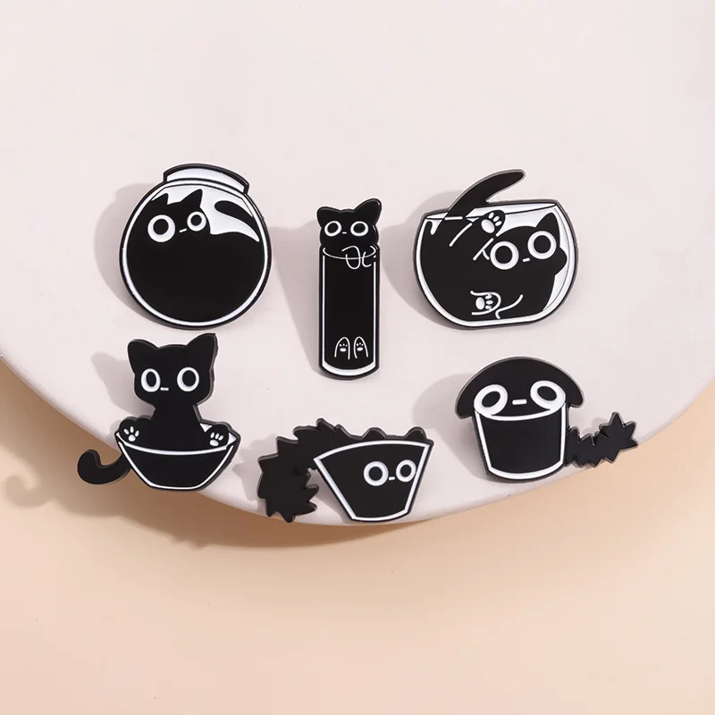 Peek-a-boo Black Cat Kitten Shape Cute Animal Brooch Simple Niche Versatile Decorative Scarf Buckle