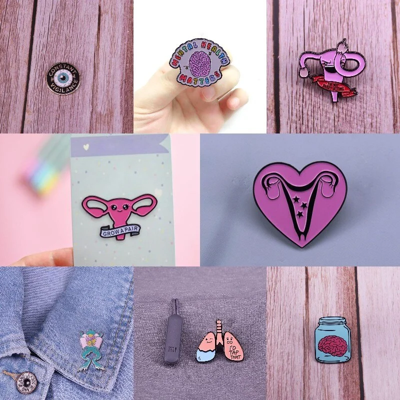 Grow A Pair Uterus Ovaries Feminist Brain Medical Enamel Brooch Pins Badge Eye Lapel Pin Women Fashion Jewelry Accessories
