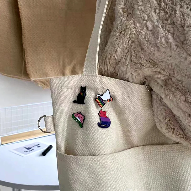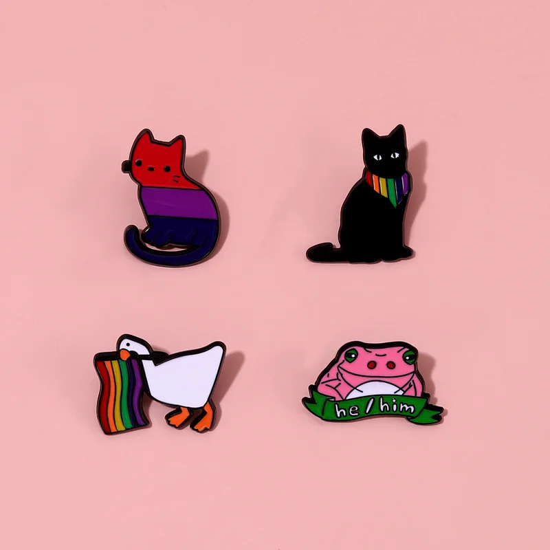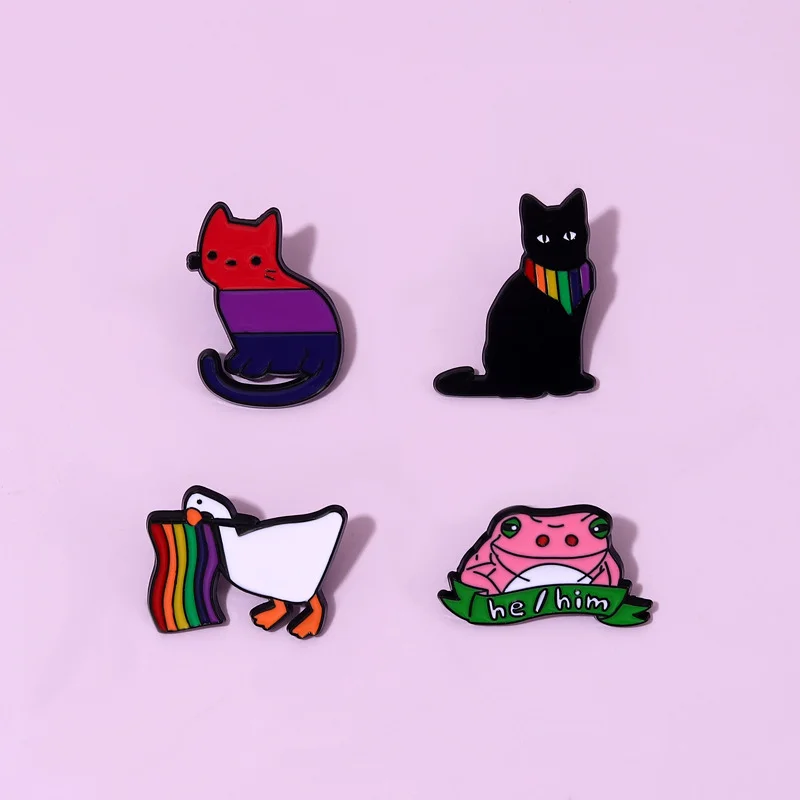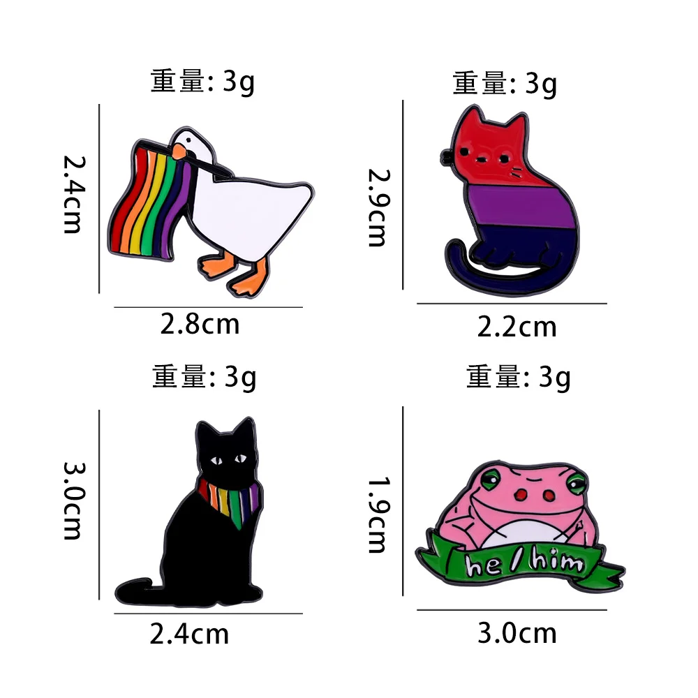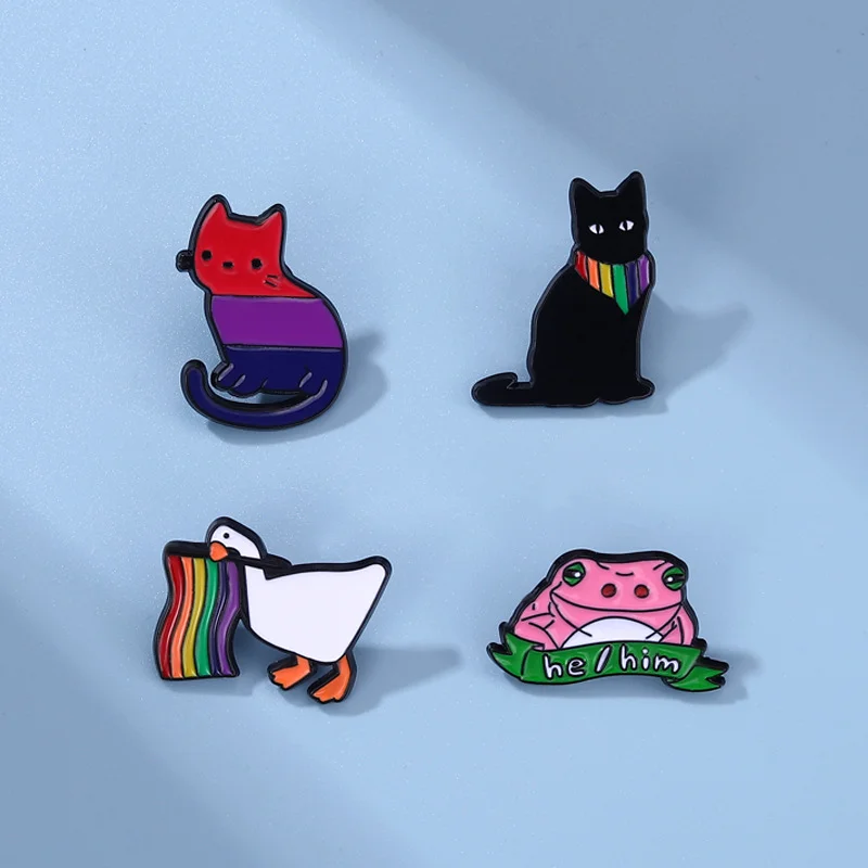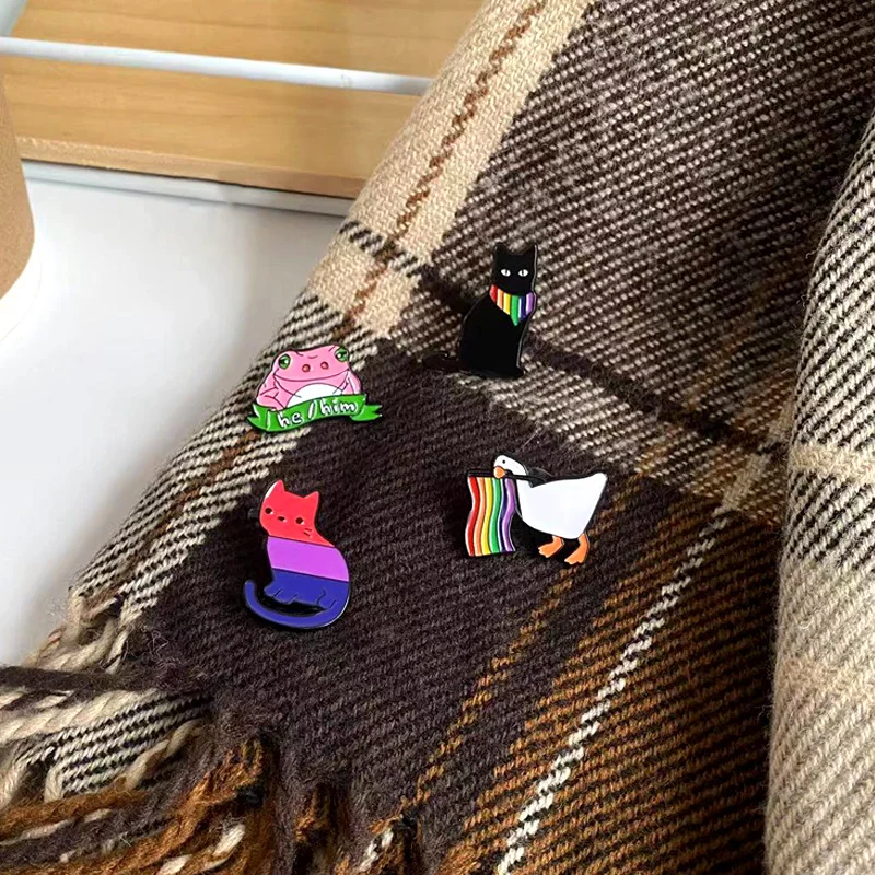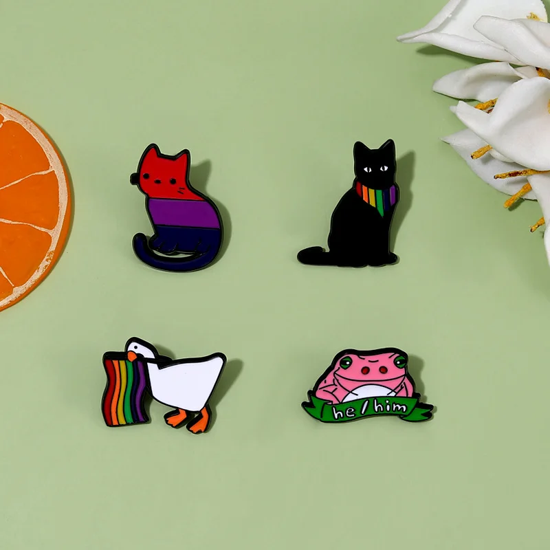 Rainbow LGBT Gay Cute and Cute Duck and Goose with A Scarf Black Cat Frog He/him Funny Shape Animal Enamel Brooch