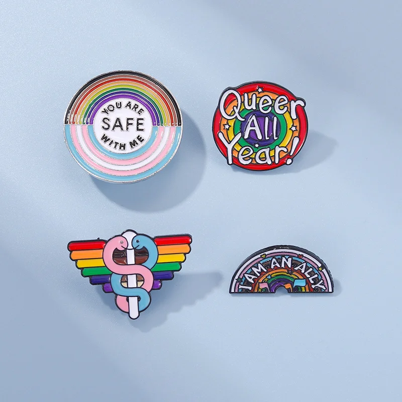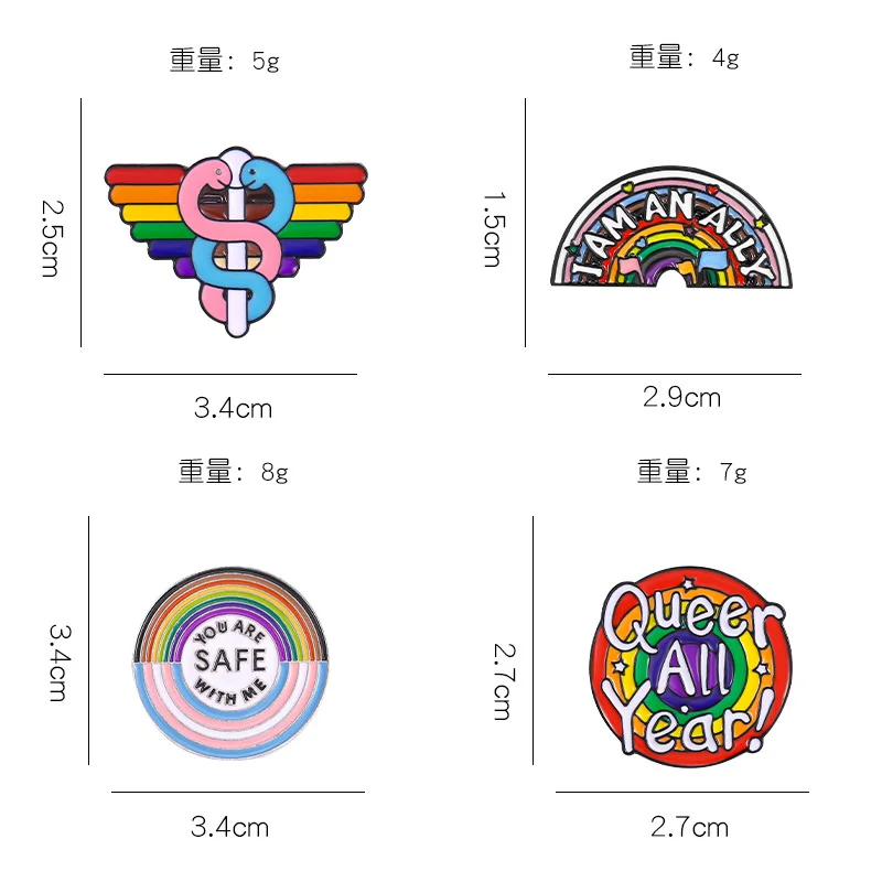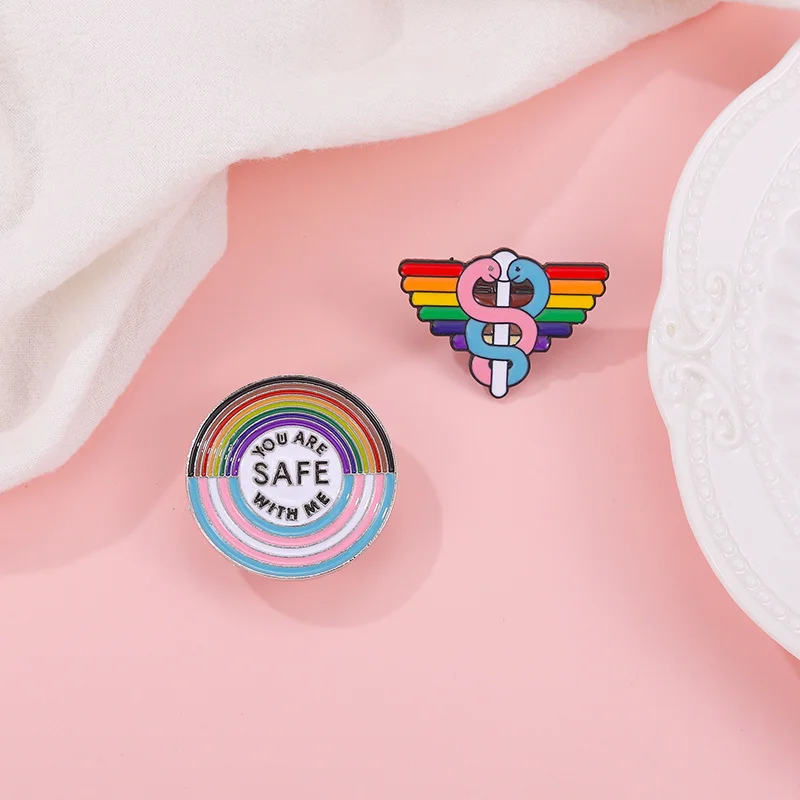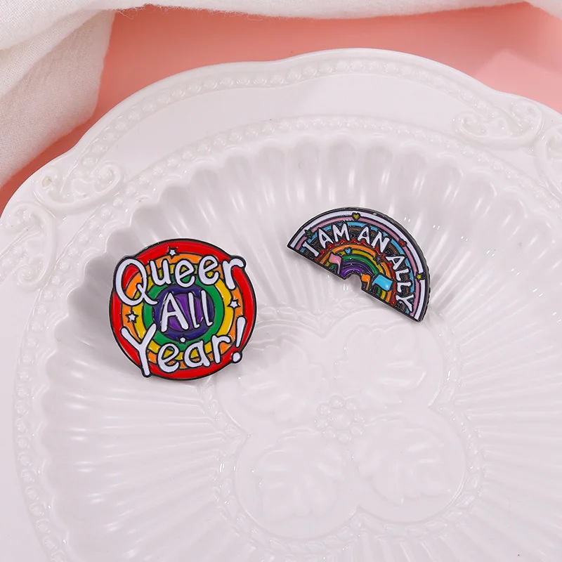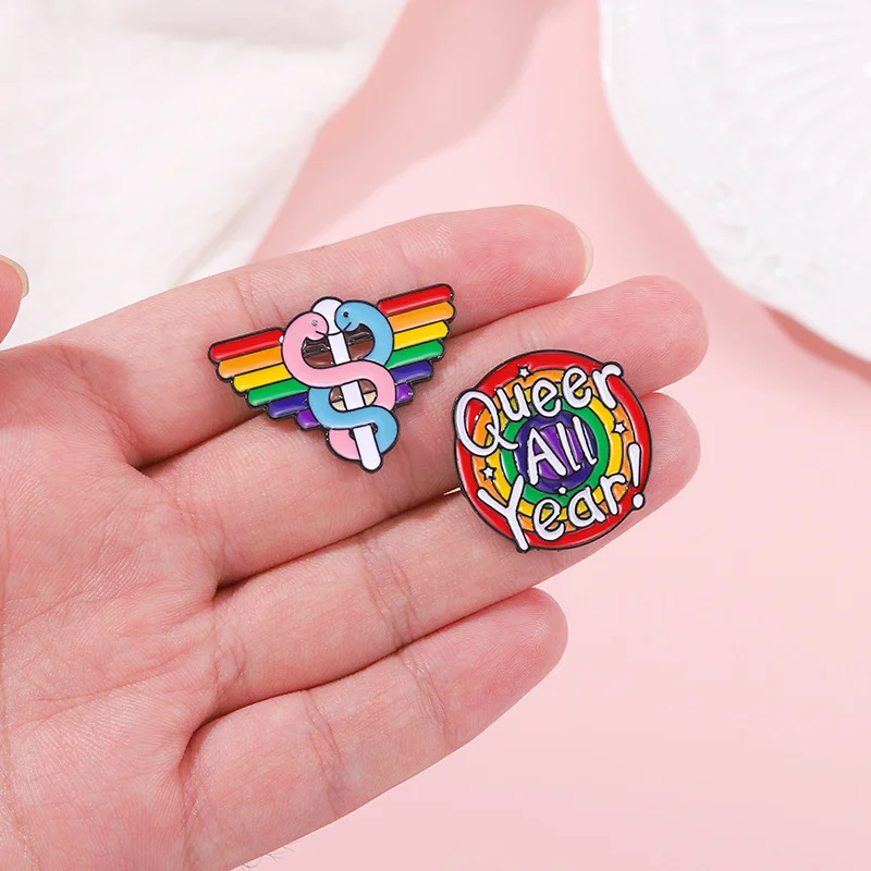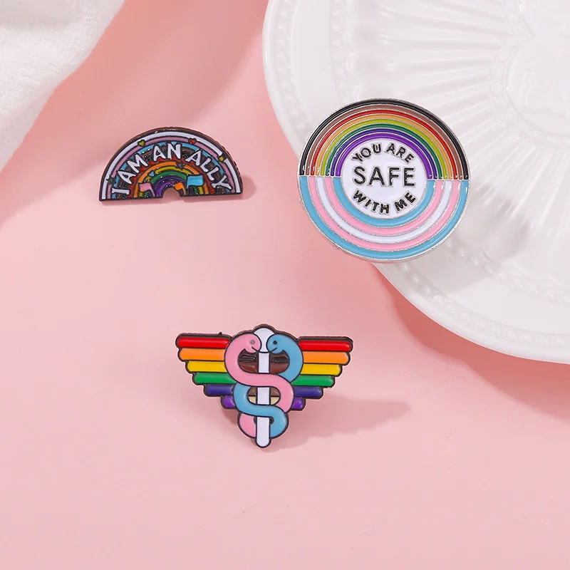 Rainbow LGBTQ Collection Brooches Badges Metal Jewelry Snake Bunting Colorful English Round Accessories