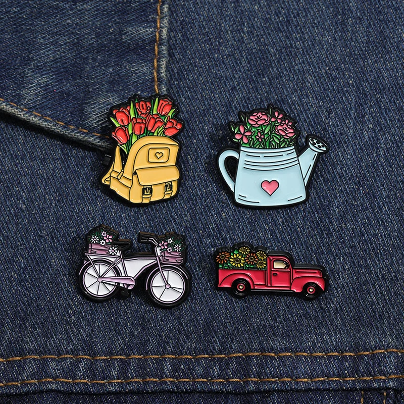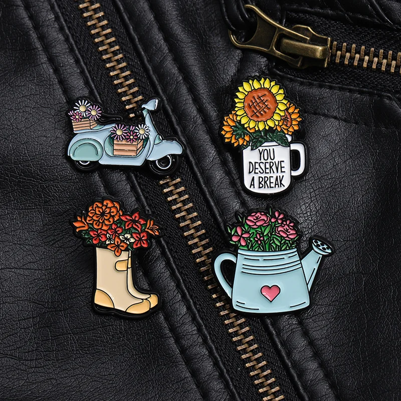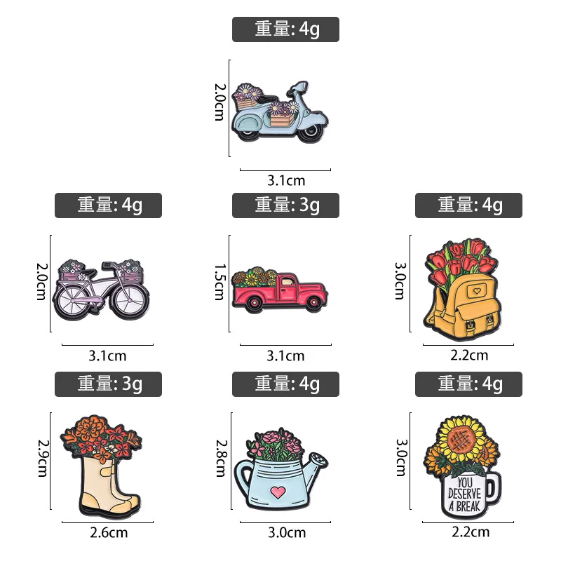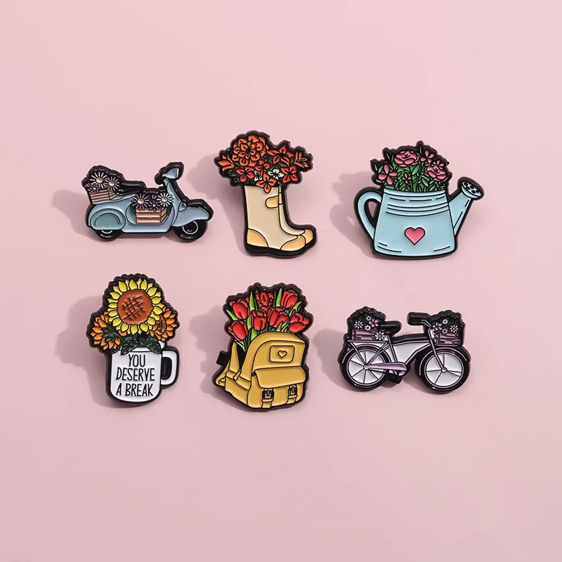 Cute Cartoon Pins Brooches Shoes Bags Flowers Sunflowers Creative Enamel Brooches Bicycles Electric Vehicles Motorcycles Metal Badges Clothing Accessories Lapel Pins Jewelry