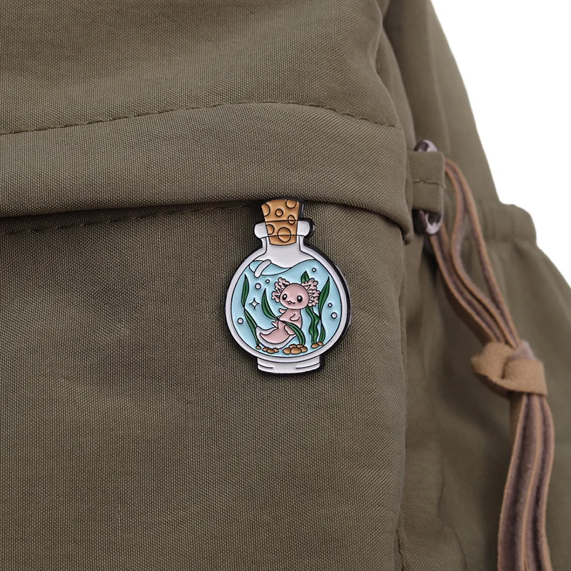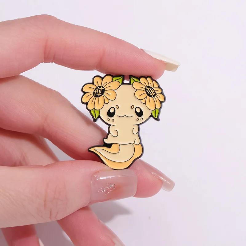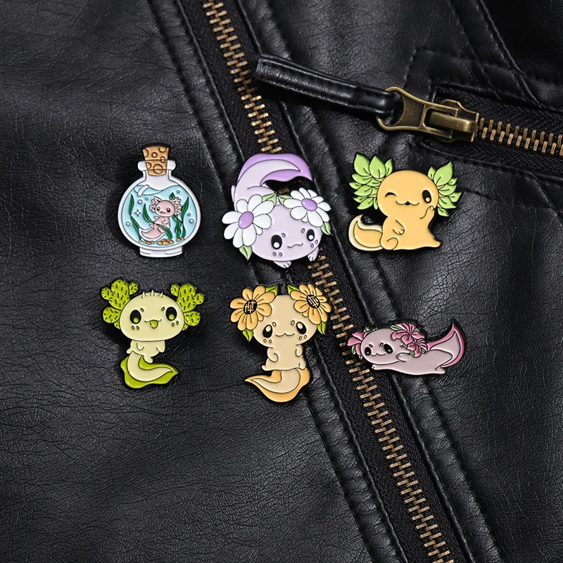Cute Little Animals Enamel Pin Badge Axolotl and Flowers Sunflower Cactus Leaves Plant Decorative Corsage Small Gift