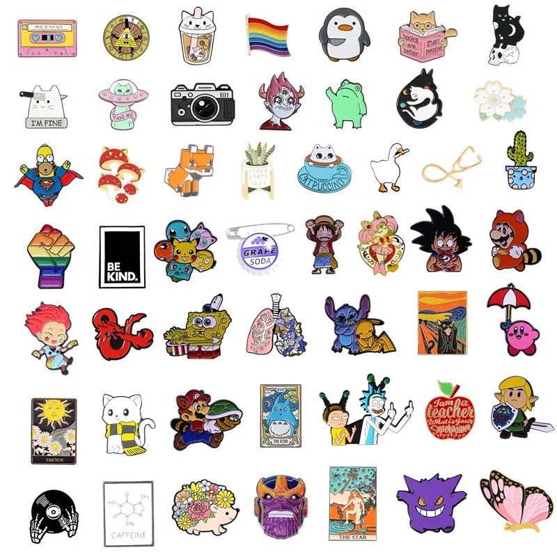 Hot Selling Mixed Non-repeating Enamel Pins Cartoon Animation Movie Animals and Other Lapel Badge Brooches Wholesale (actual Products Shipped Shall Be Subject To The Pictures)