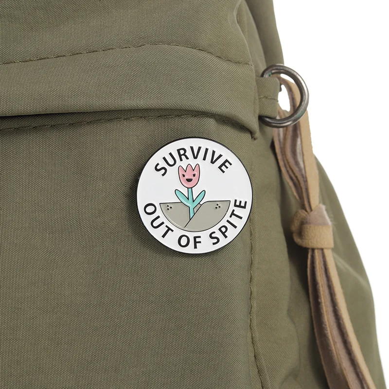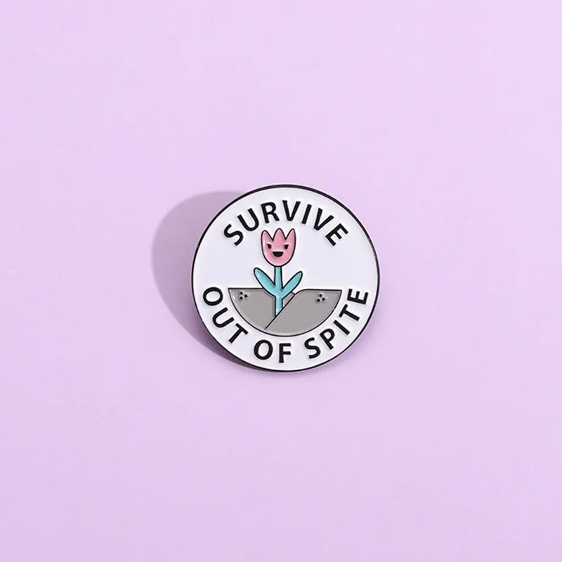 Round Creative Flower Plant Geometric Letters SURVIVE OUT OF SPITE Metal Enamel Brooch Brooch Clothes Bag Decoration Badge
