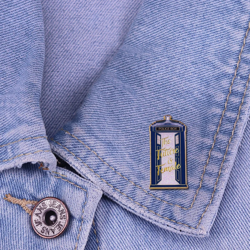Science fiction police box enamel pin phone booth time machine badge lapel brooch Gifts for fans and friends wholesale