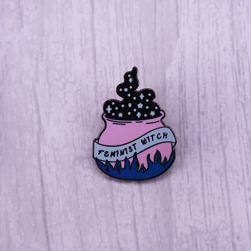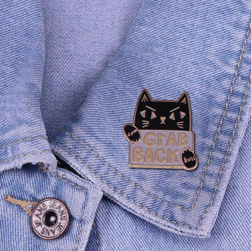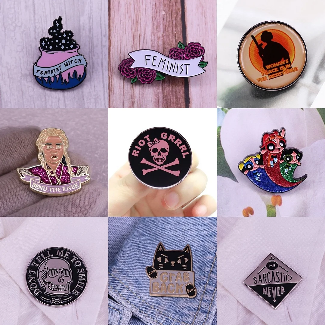 Feminism Female Cartoon Cat Brooch Lapel Enamel Badge Collection Denim Jacket Backpack Pin Ladies Gift