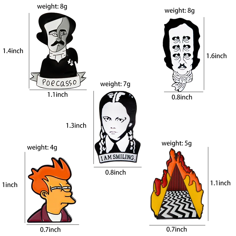 Movie Role Enamel Pin Brooch Writer Wednesday Fry Badges Clothes Lapel Cap Bag Creative Fun Jewelry