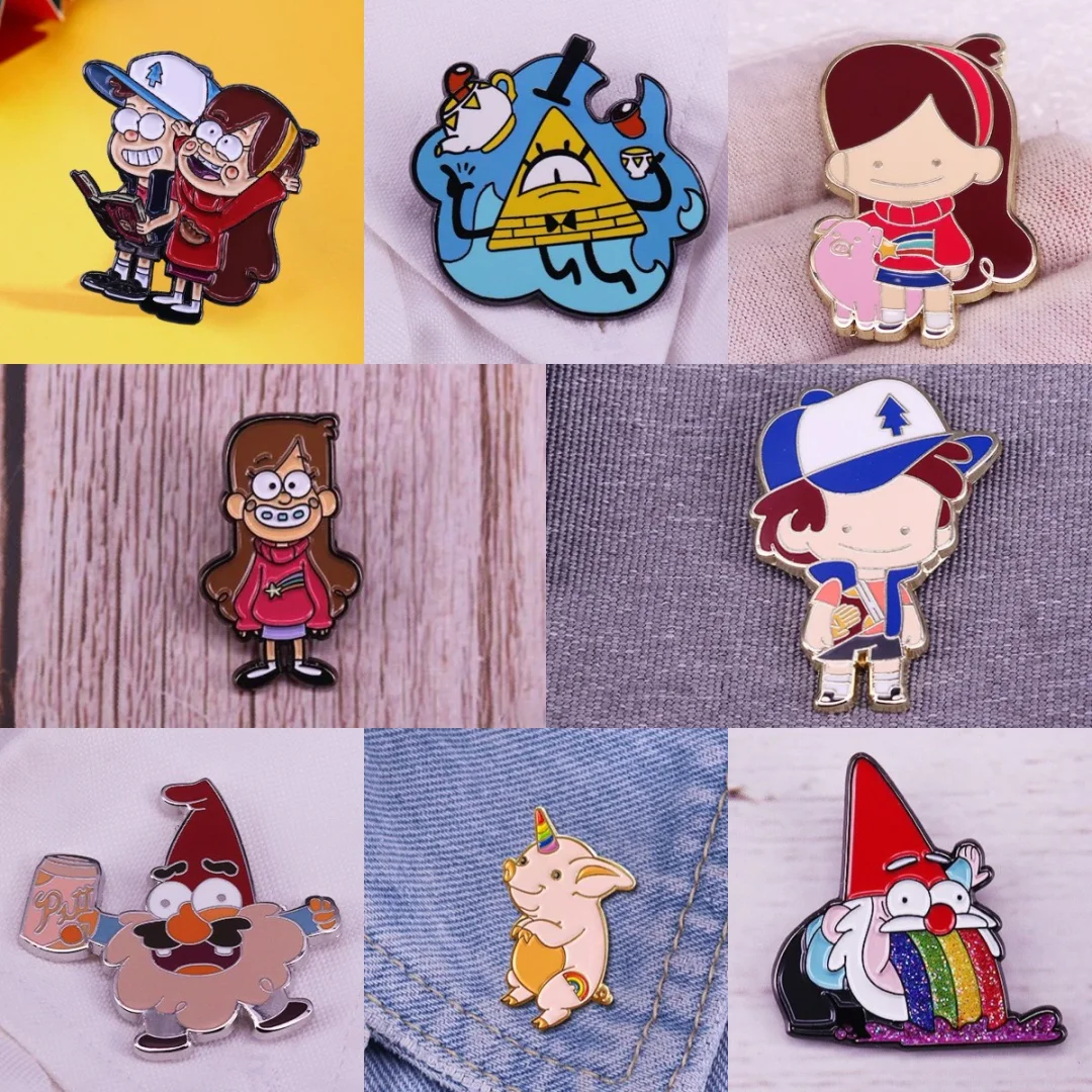 Funny Adventure Animation Gravity Falls Enamel Pins Cute Girl Metal Cartoon Brooch Backpack Collar Lapel Badges Jewelry Gift