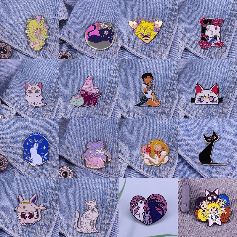 High Quality Cute Magic Girl Metal "Sailor Moon" Enamel Badge Pins Lapel Denim Jacket Backpack Pin Children's Jewelry Gifts