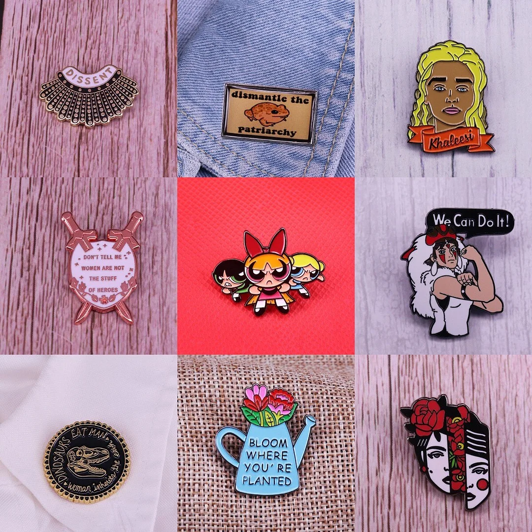Power Girls Feminism Enamel Pins Cute Cowboy Coat Cartoon Fist Brooch Men Women Jewelry Gifts Hat Lapel Badges