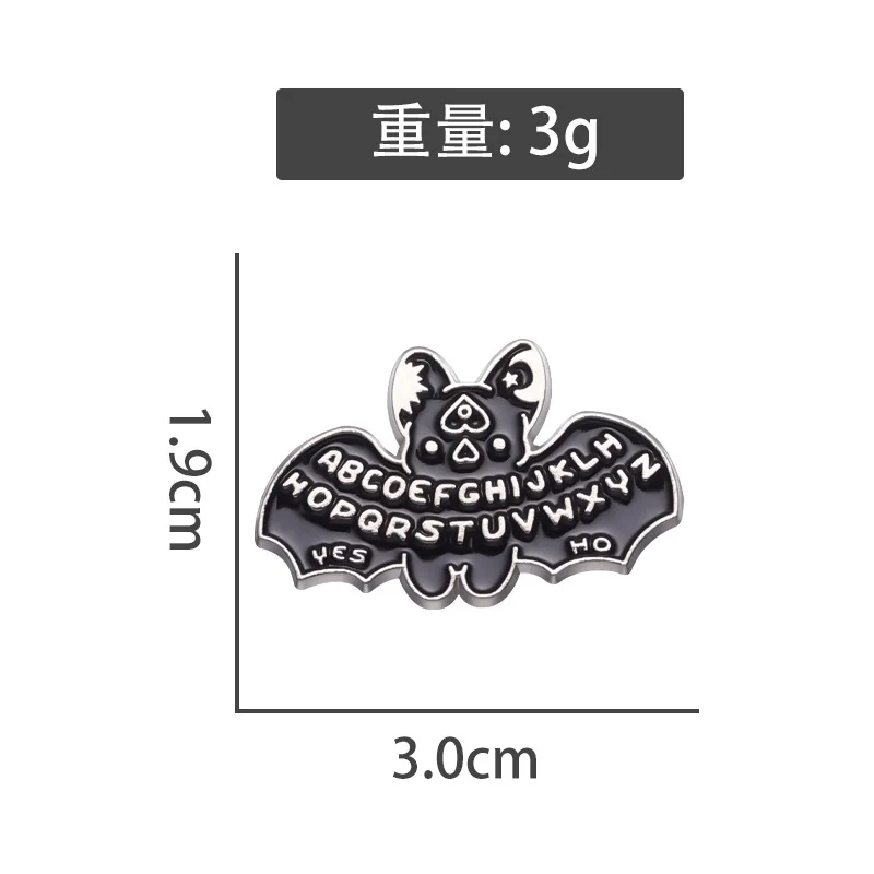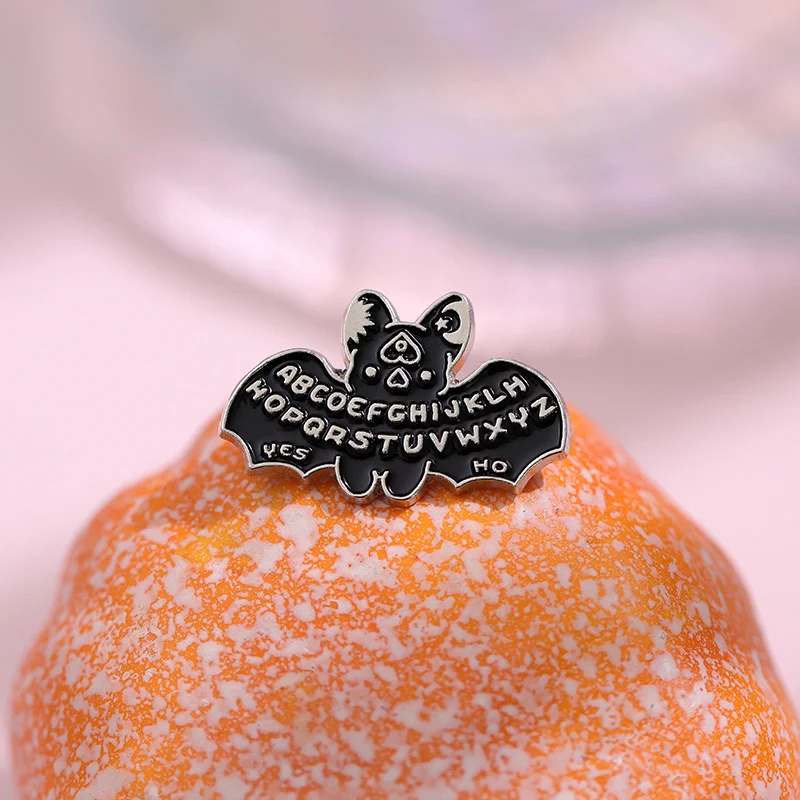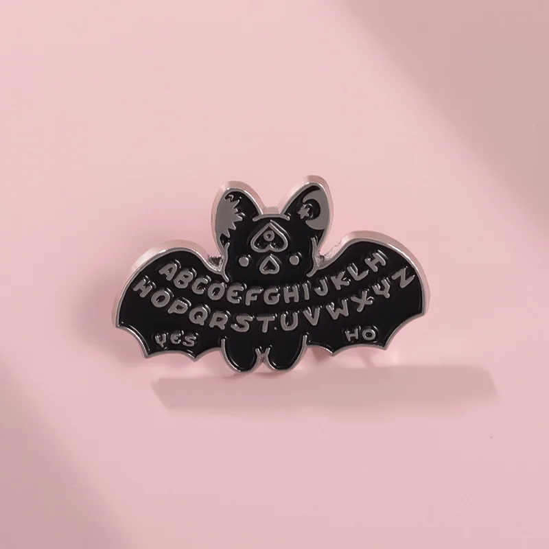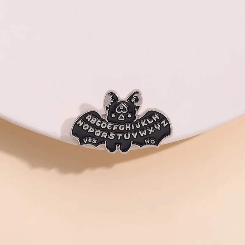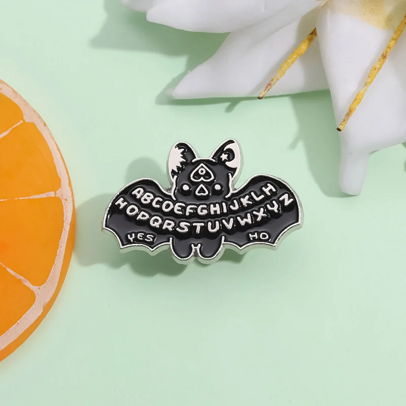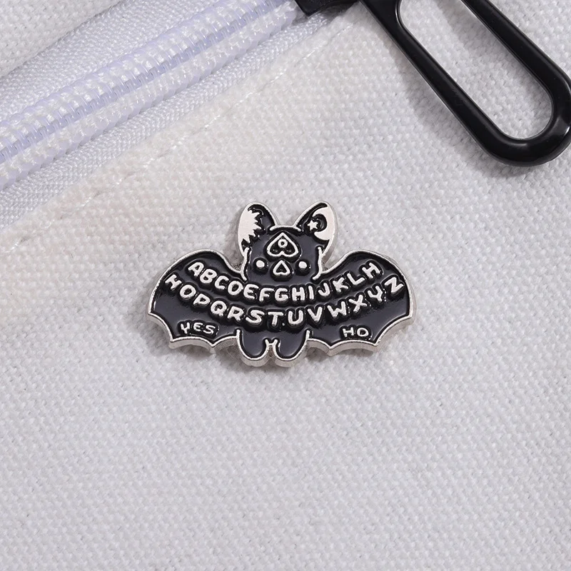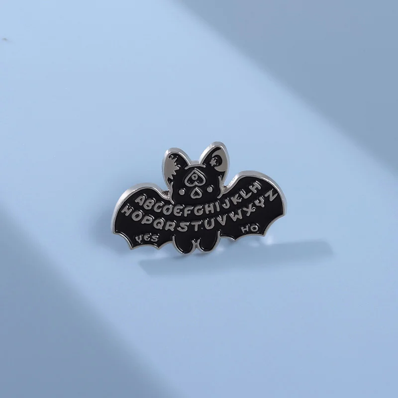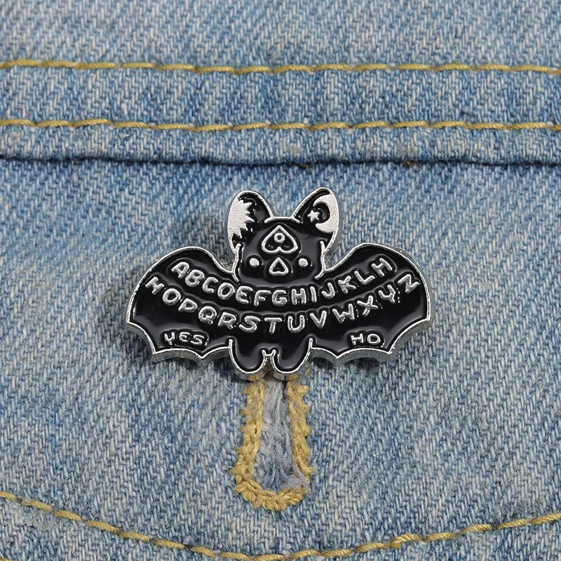 26 Letters Black Bat Enamel Pin Brooch Animal Bird Inspirational Quote Metal Badge Medal
