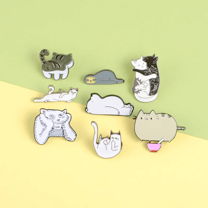 Animal Enamel Pins Lazy Enchanting Cat Thinker Tiger Brooch Suspected Life Bear Lapel Pin Badge Sleeping Sloth Gift Wholesale
