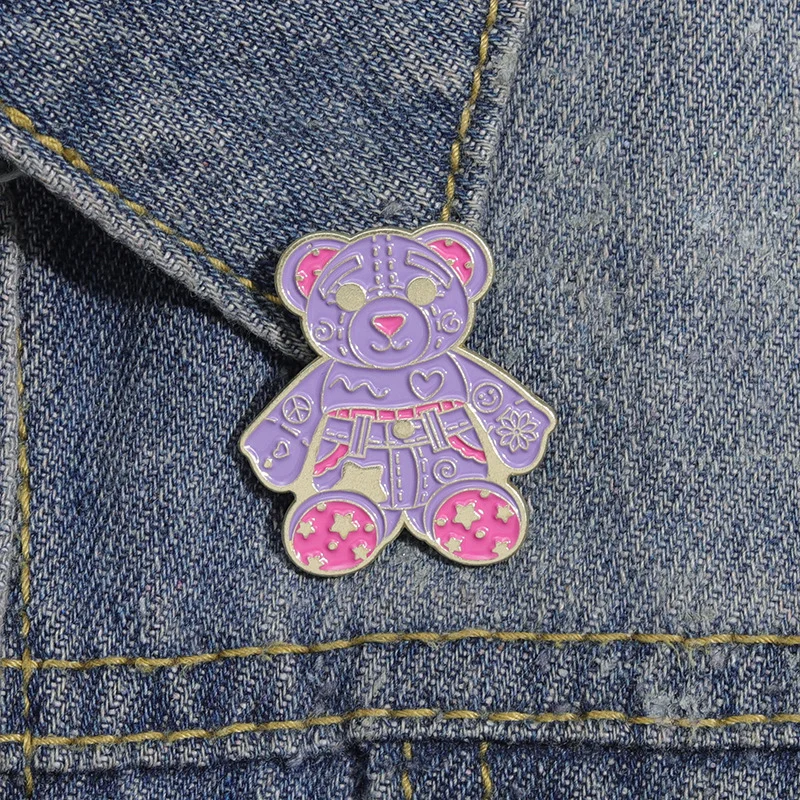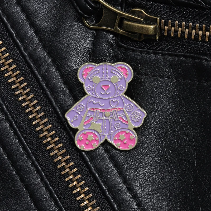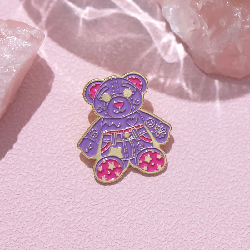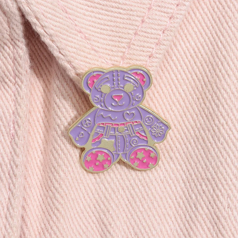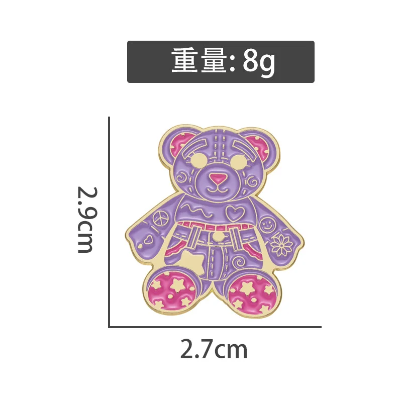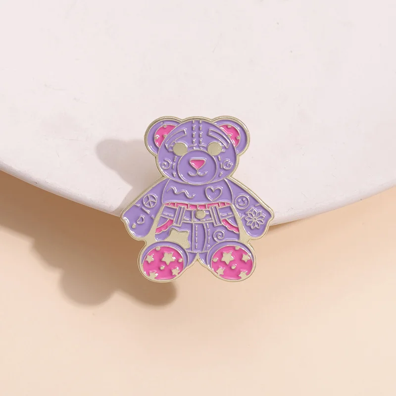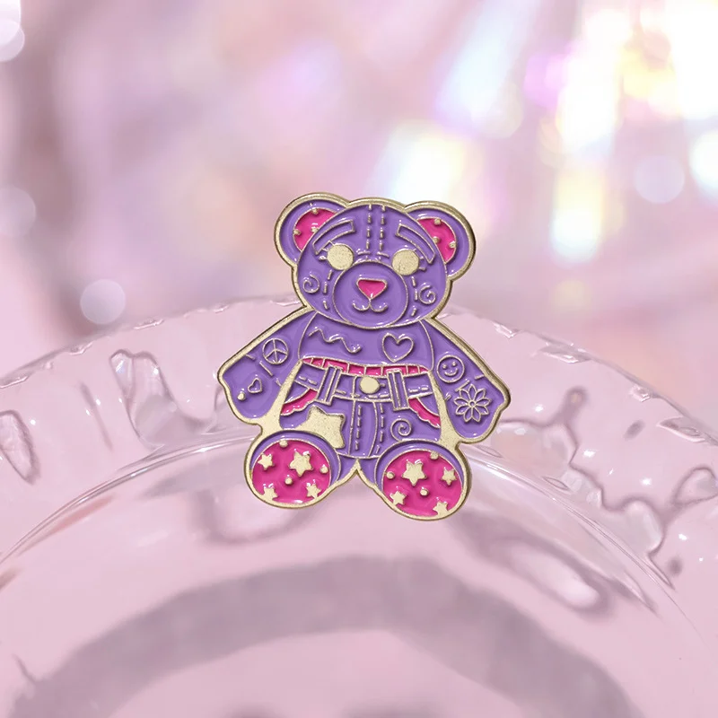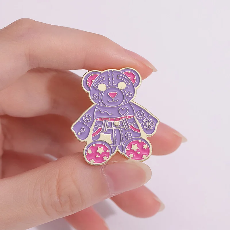 Cute Cartoon Animal Enamel Pin Brooch Shiny Purple Little Doll Bear Girl Birthday Gift Exquisite Metal Badge Trinket