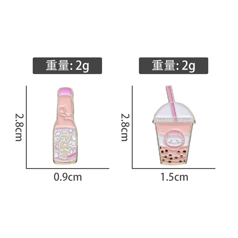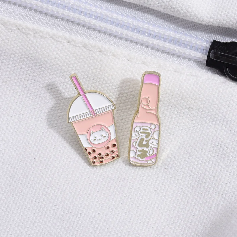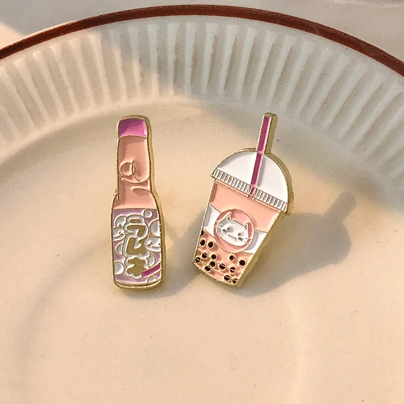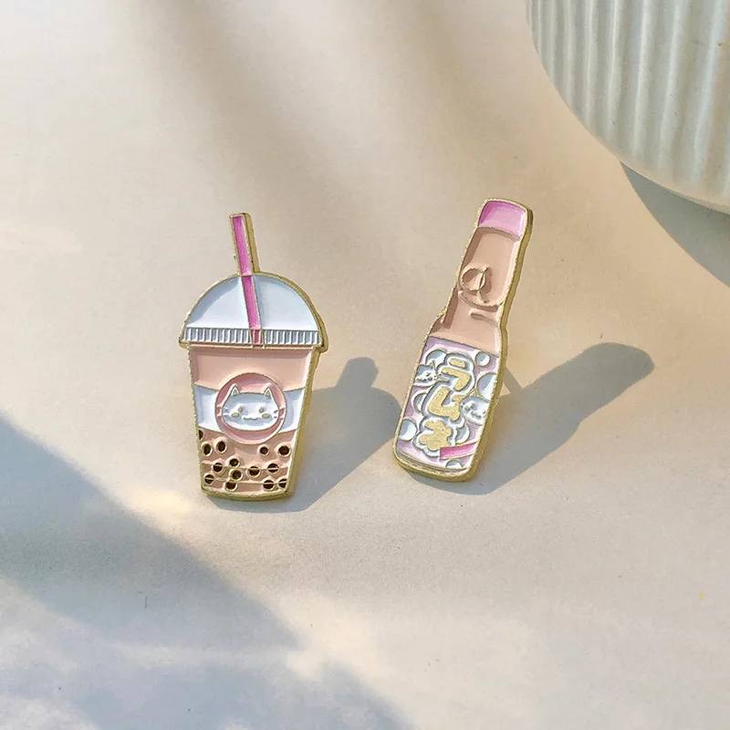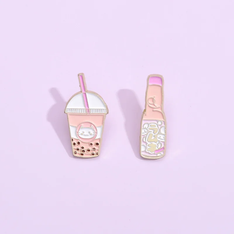 Cute Food Pearl Milk Tea Brooch Pink Drink Cat Straw Girly Scarf Buckle Milk Animal Metal Badge
