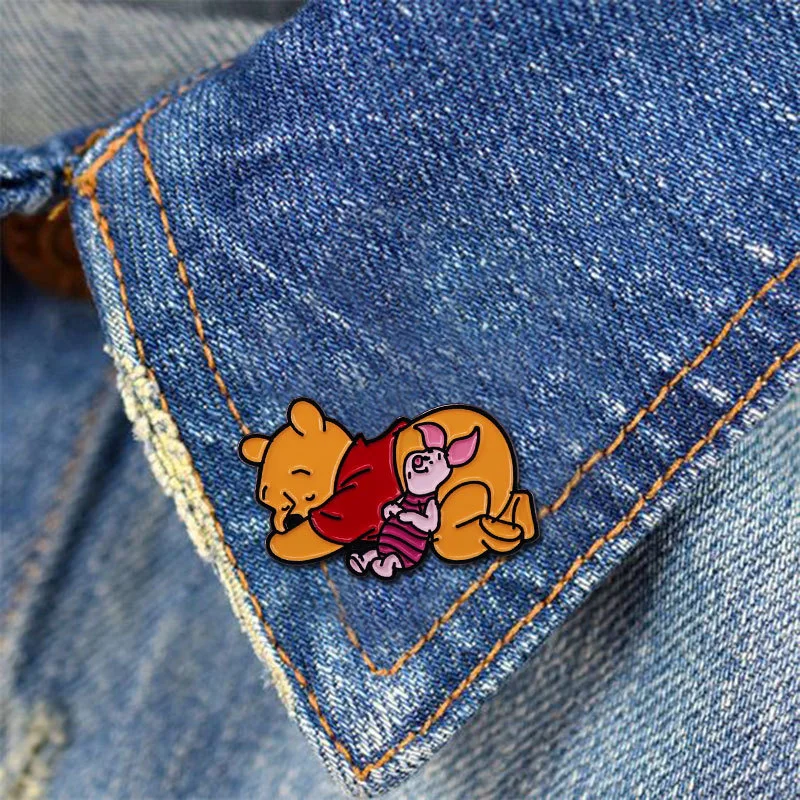 Cute Yellow Bear and Piggy Enamel Pin Brooch Cute Cartoon Animation Character Badge