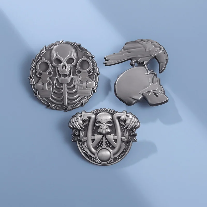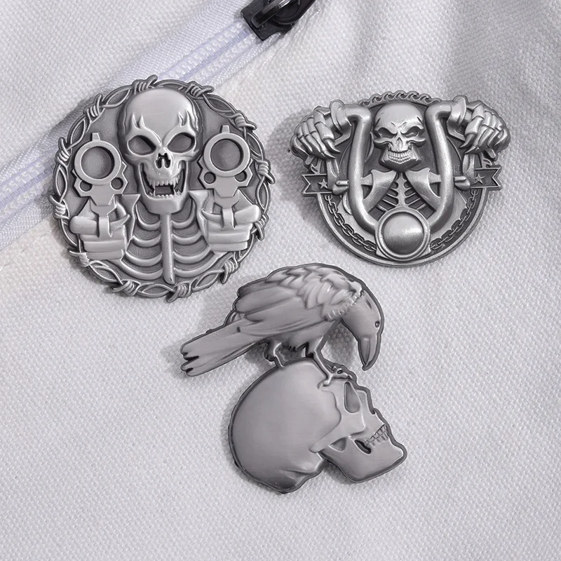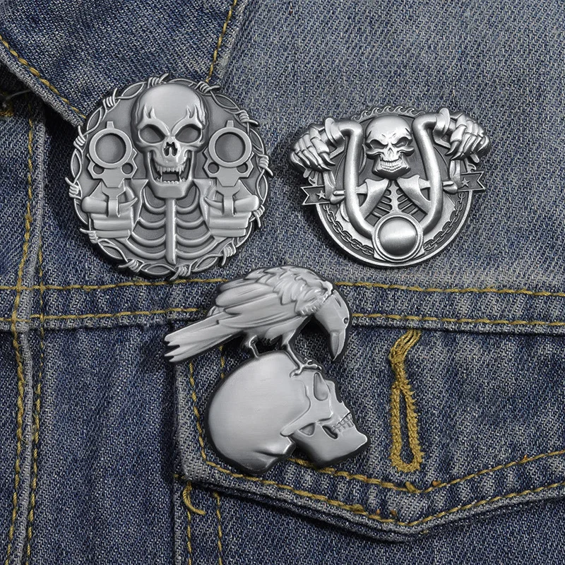 Dark Punk Enamel Brooch Personalized Skull Bird Shape Metal Badge Halloween Accessory