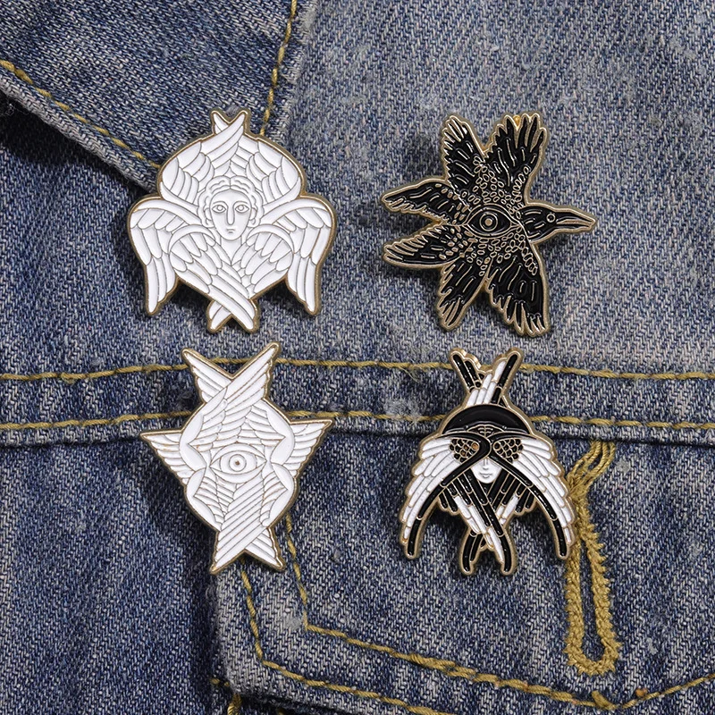 Enamel Pin Brooch Angel Wings Eye of Horus Sun Metal Badge Animal Bird Clothing Accessories Badge
