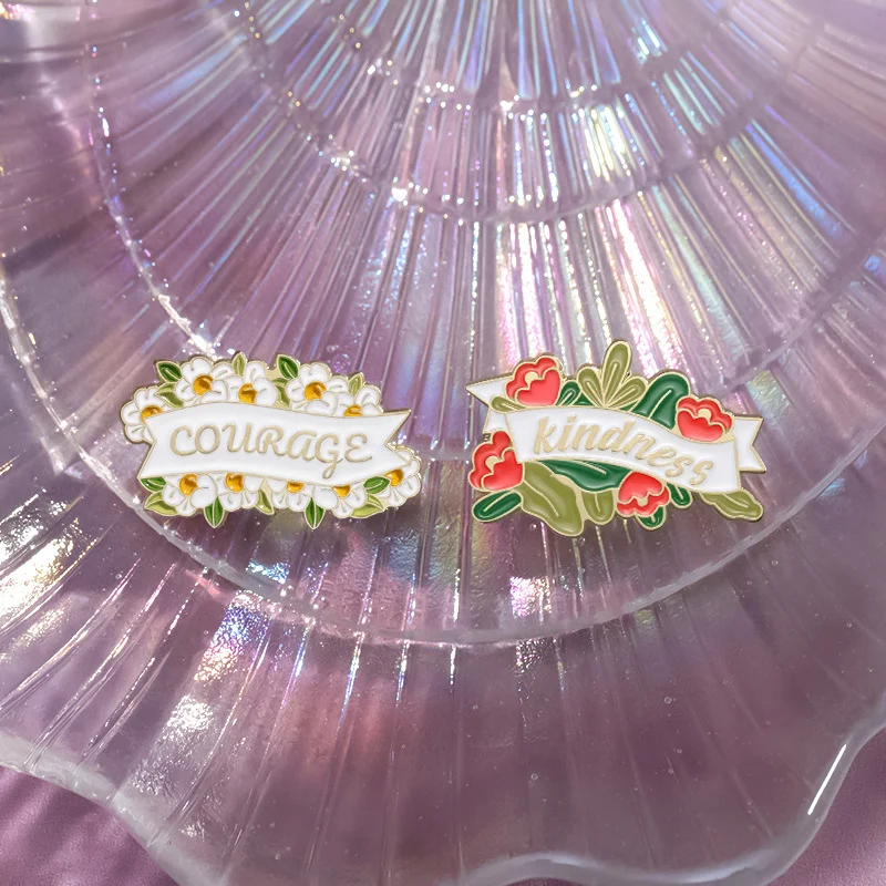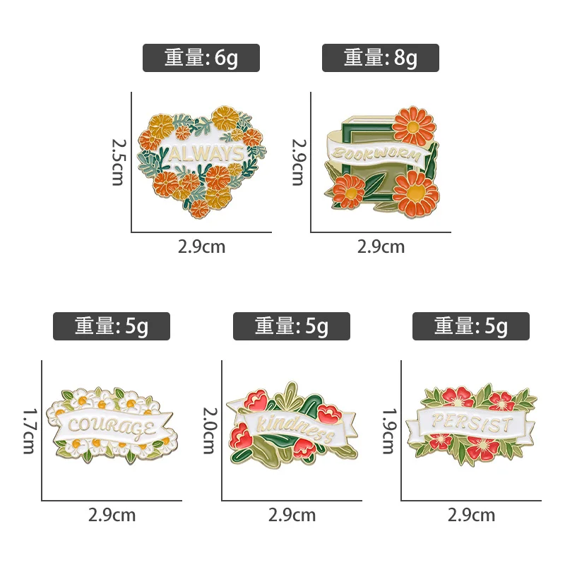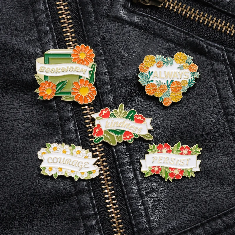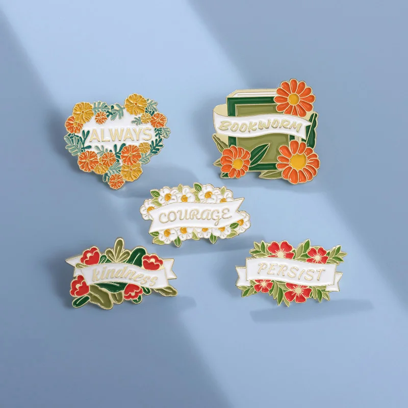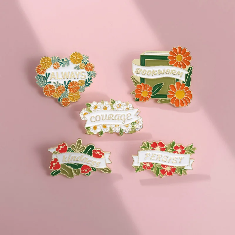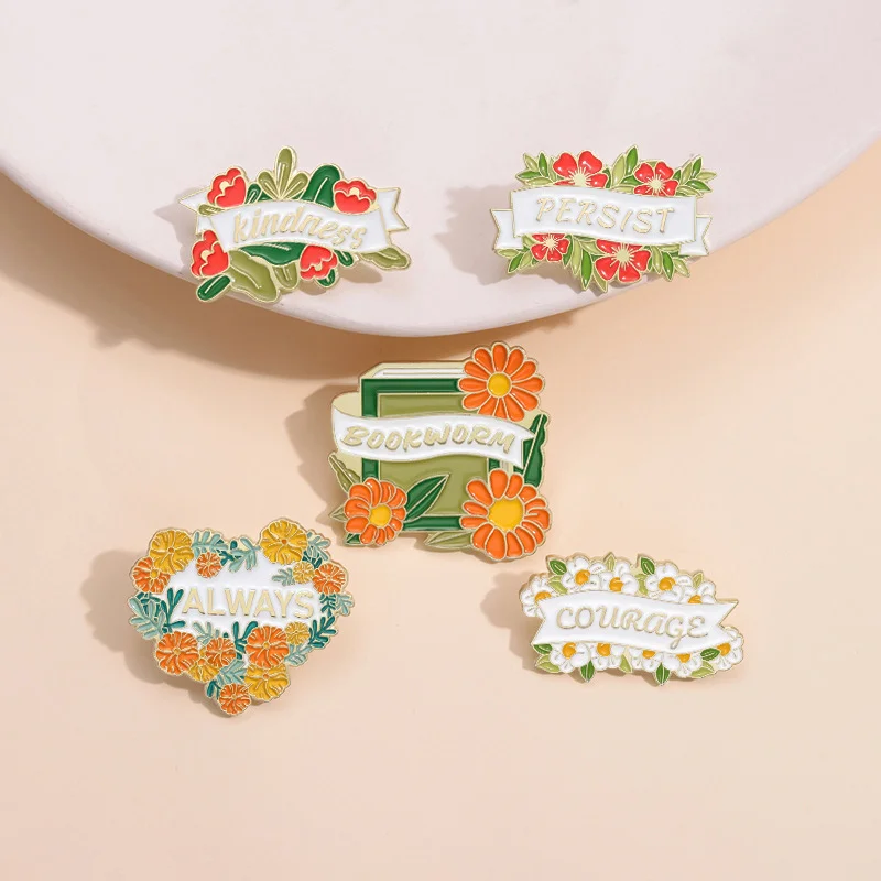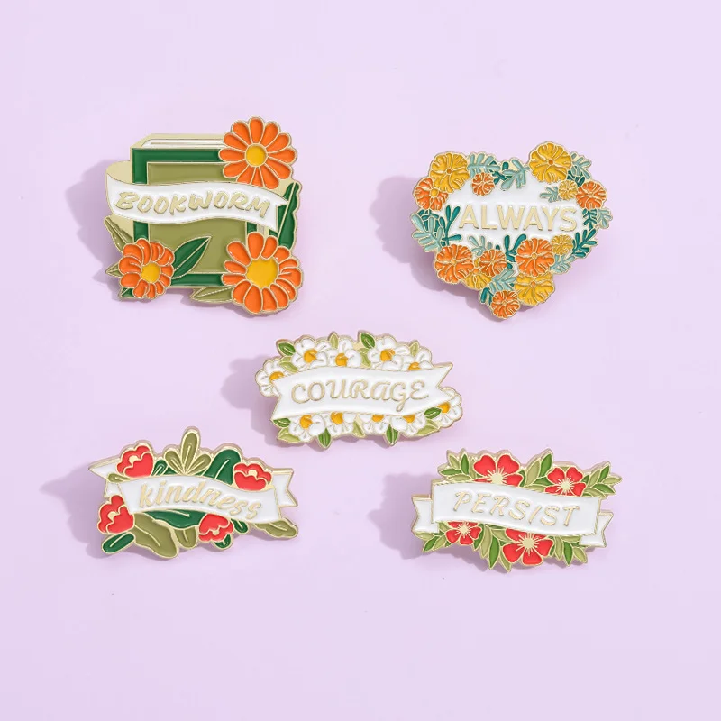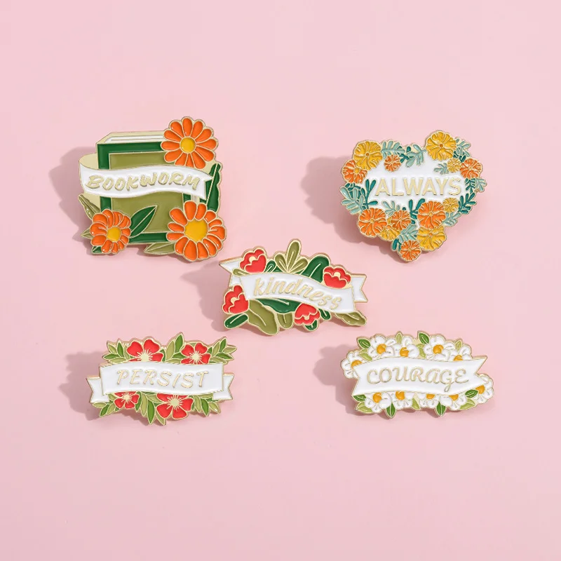 ALWAYS Bookworm Courage Kindness Persist Book Enamel Pin Brooch Flower Ribbon Beautiful Garden Gift Metal Badge Clothing Accessories Collar Pin Scarf Buckle