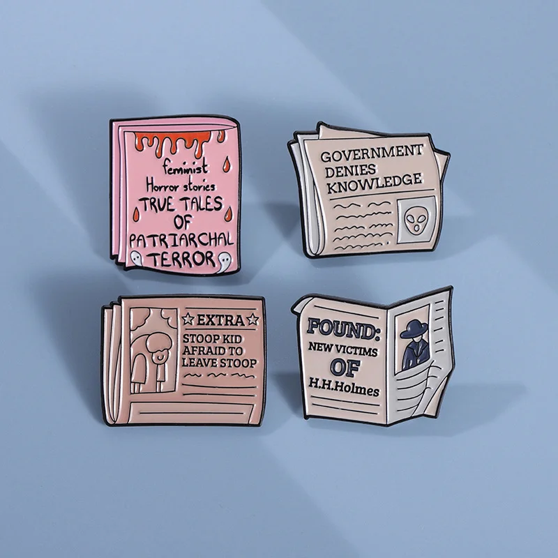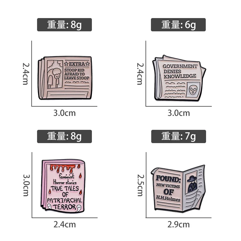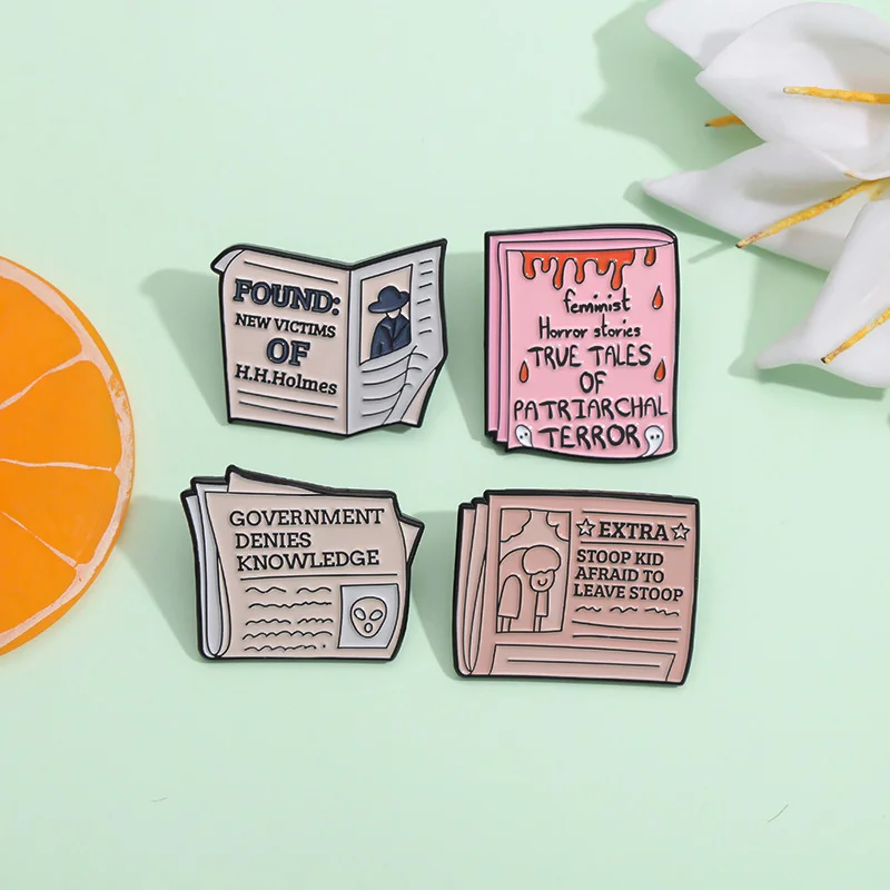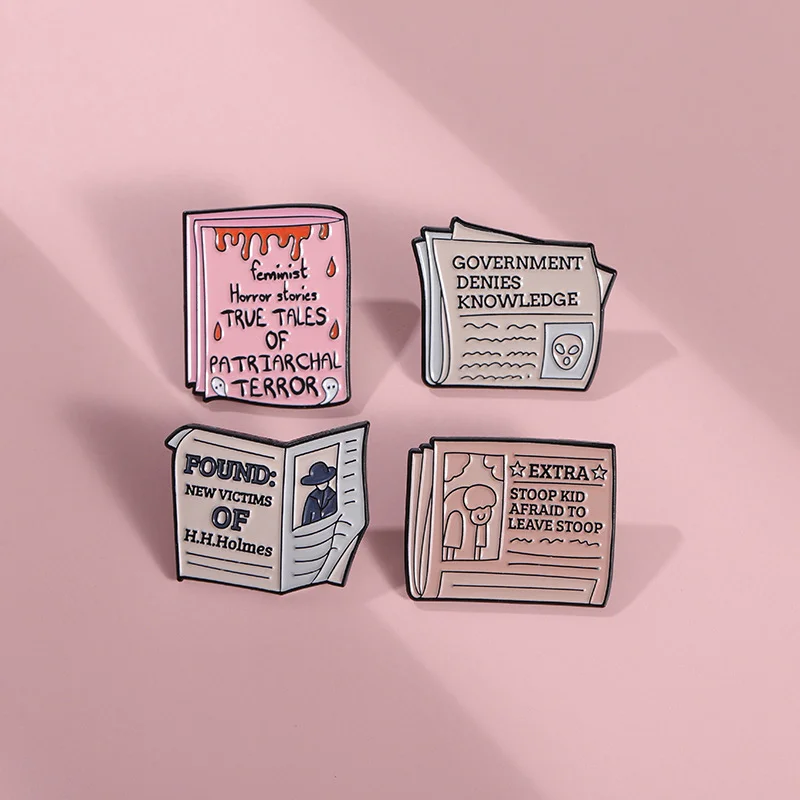 Brooch Pink Retro Newspaper English News Creative Metal Badge Cute Decorative Accessories Fun Badge
