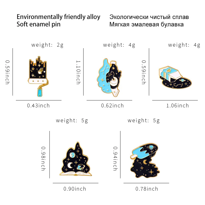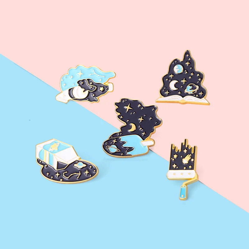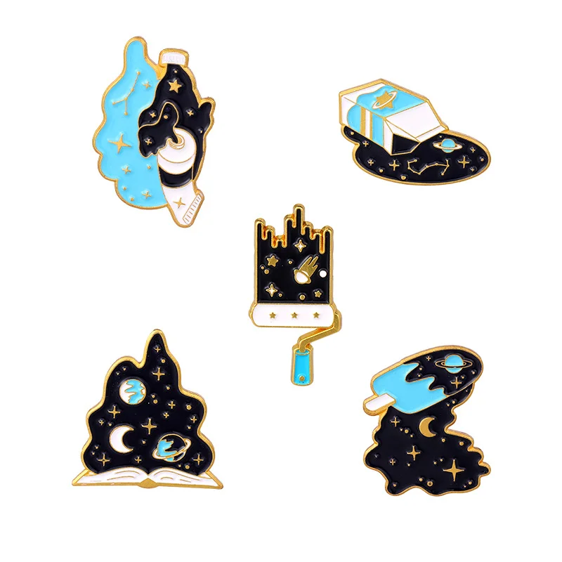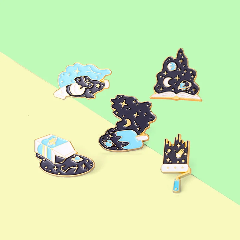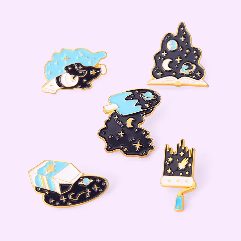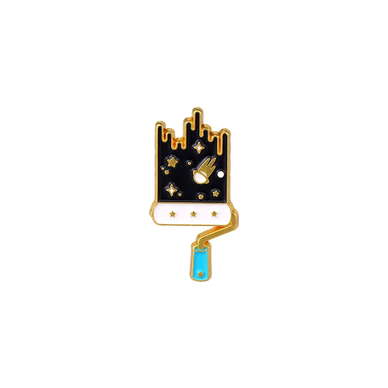 Creative Cartoon Starry Sky Pattern Brush Geometric Shape Accessories Badge Brooch Enamel Pin Wholesale