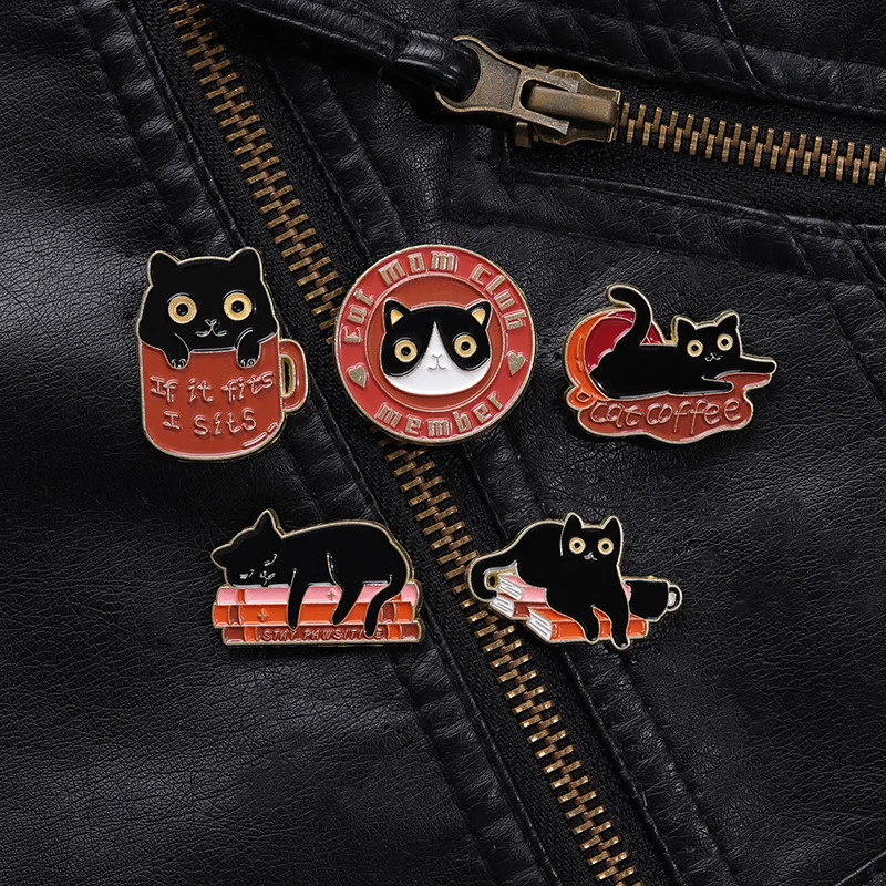 Cute Cartoon Cat Animal Brooch Black Cat Book Cup Coffee Badge Denim Accessories Bag Enamel Pin Badge