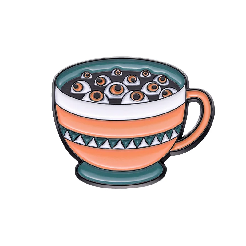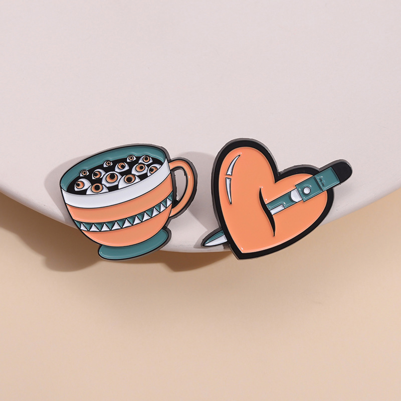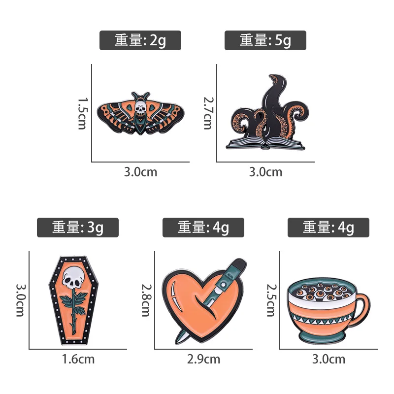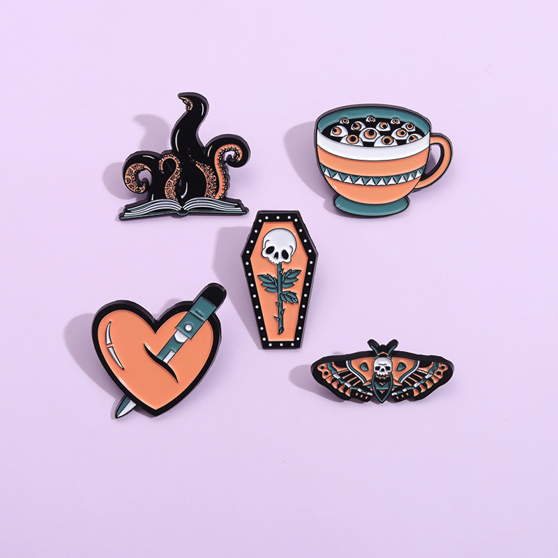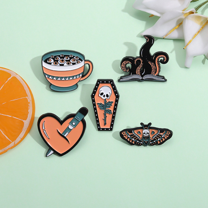 Animal Enamel Brooch Eyes Cup Love Dagger Skull Coffin Moth Octopus Reading Metal Badge Punk Costume Accessories Halloween Gift