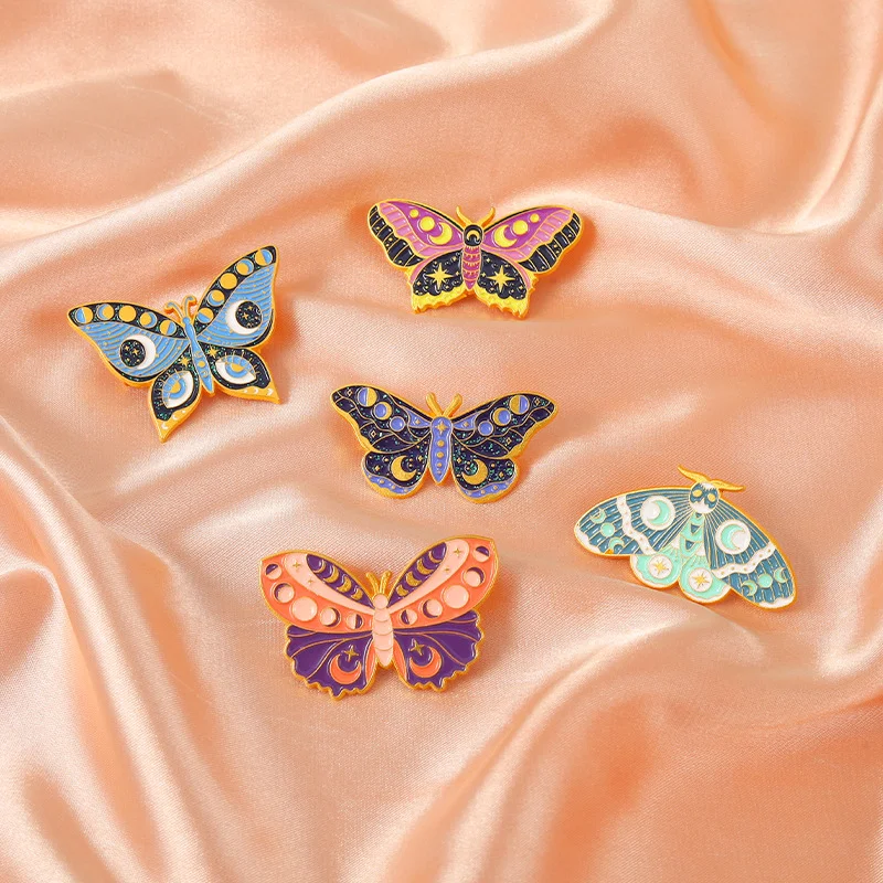 Butterfly Enamel Pin Brooches Metal Moon Badges Paint Electroplating Insects Beautiful Clothing Accessories Wholesale