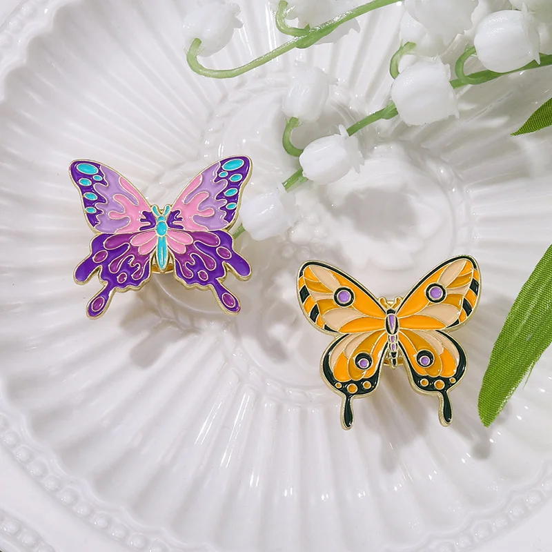 Butterfly Enamel Pin Creative Animal Flower Insect Cartoon Purple Butterfly Corsage Badge Trinket