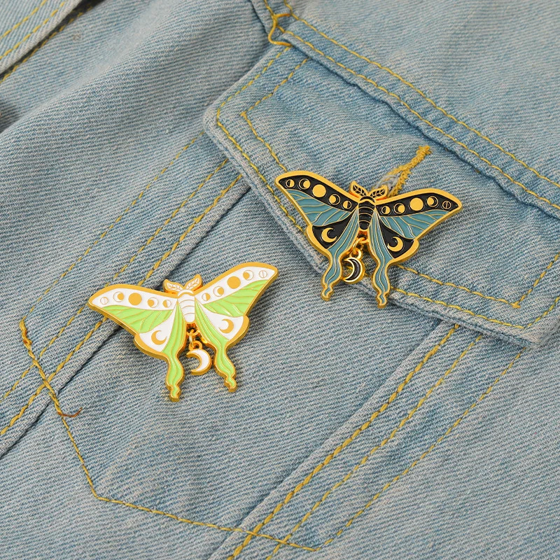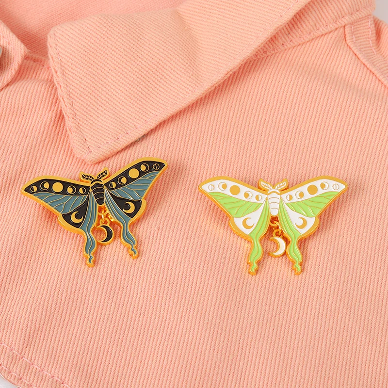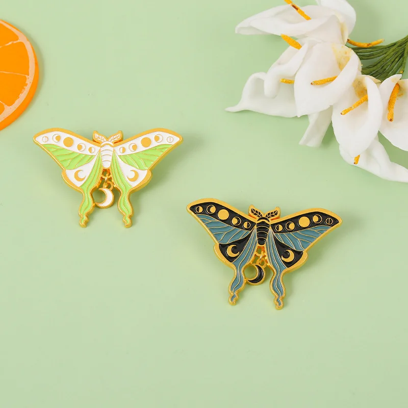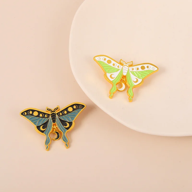 Cute Enamel Pin Butterfly Moon Brooch Insect Metal Badge Animal Crescent Pair of Clothing Accessories Silk Scarf Wholesale