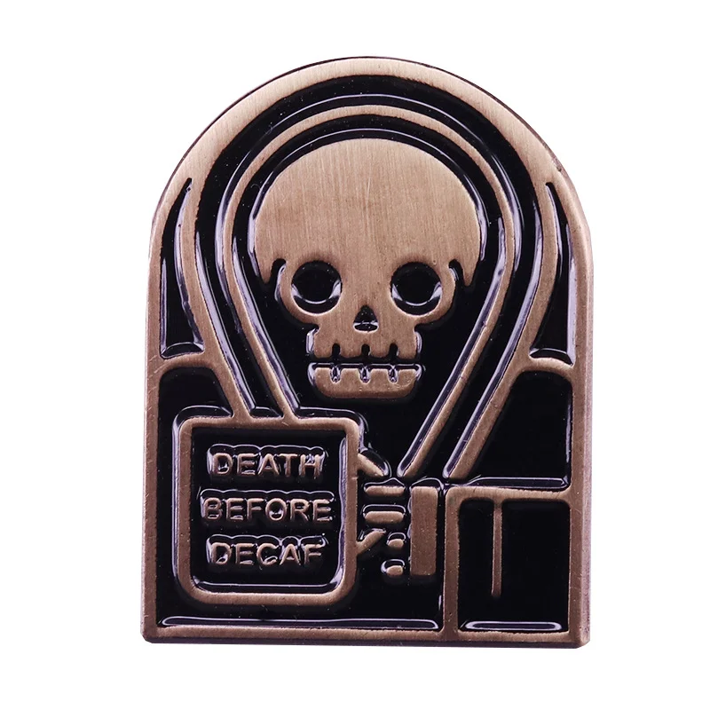 High Quality Copper Skull Enamel Brooch Punk Black Gothic Skull Collection Coffee Band Enthusiast Badge Gift for Women and Men