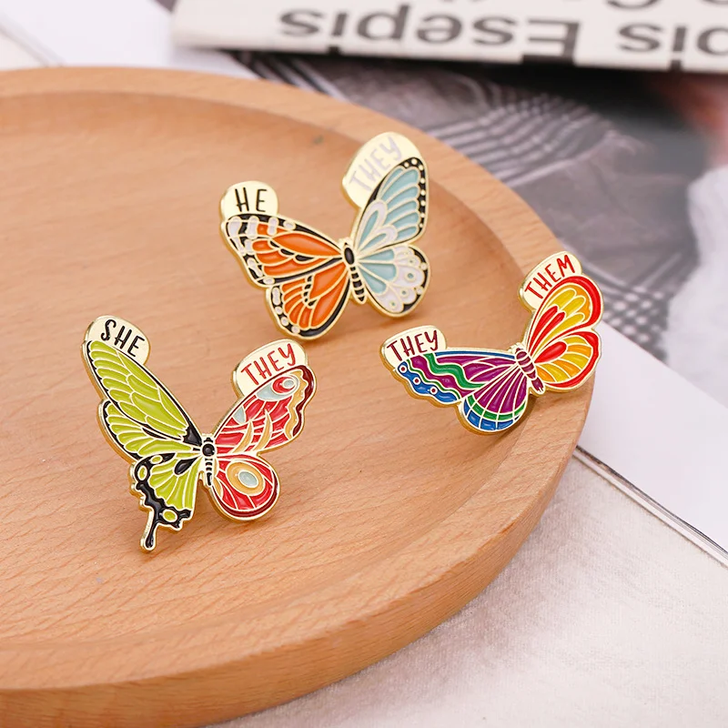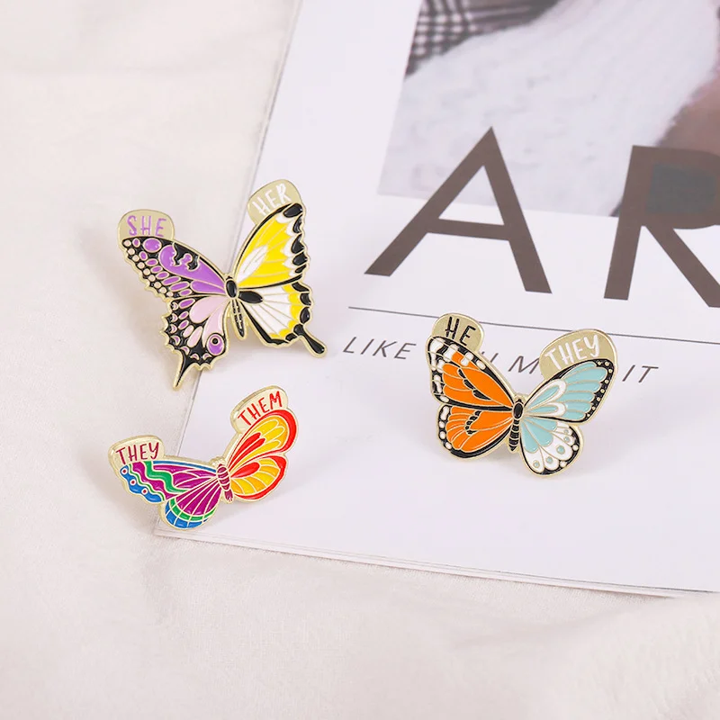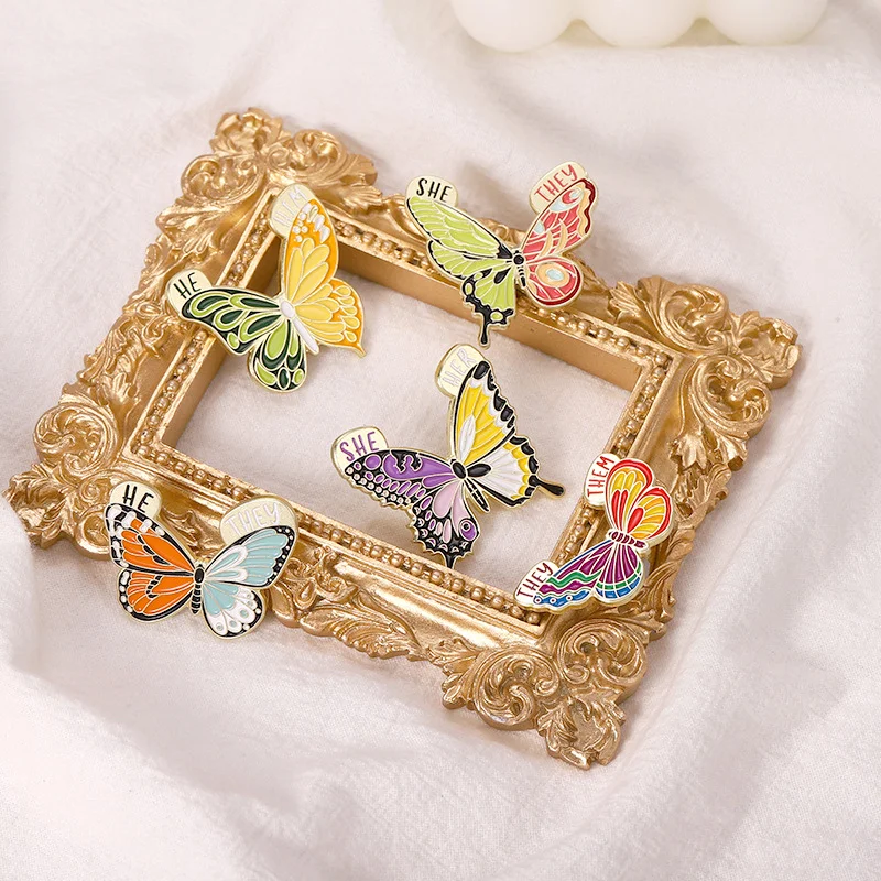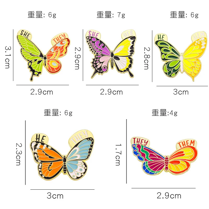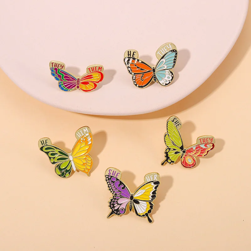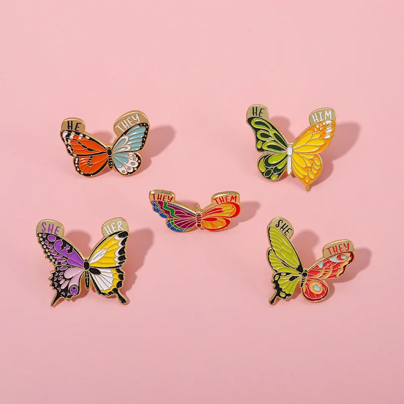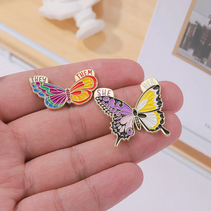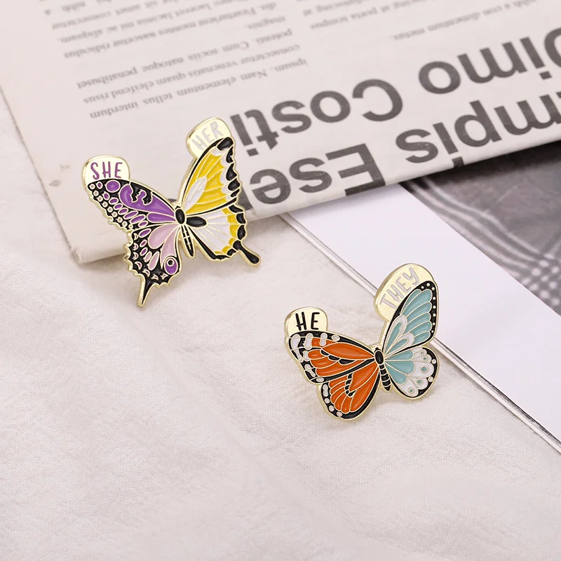 Insect Brooch Butterfly English SHE/HE/THEM/THEY Metal Badge Clothing Accessories Small Insects Flying Insects Hit Color Creative Pins
