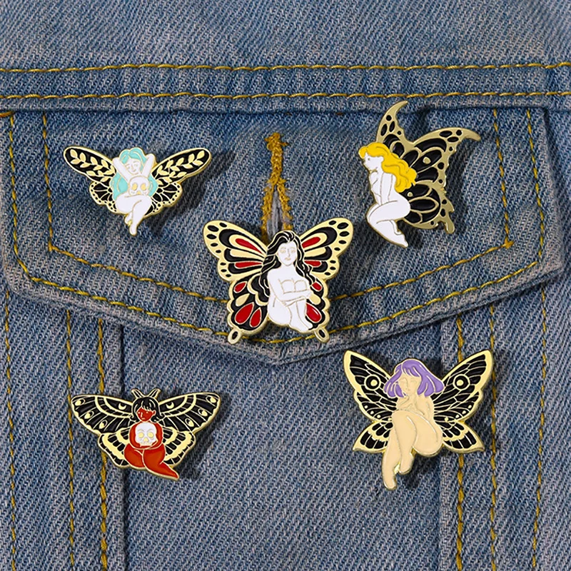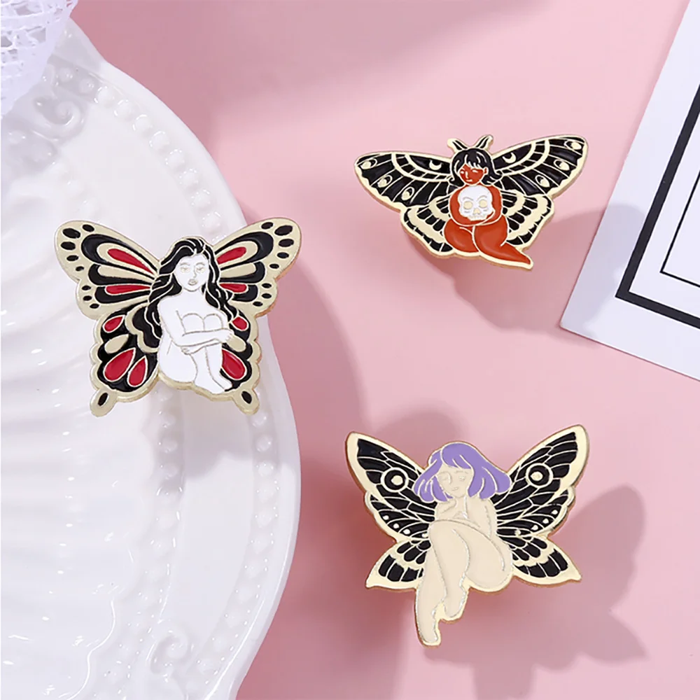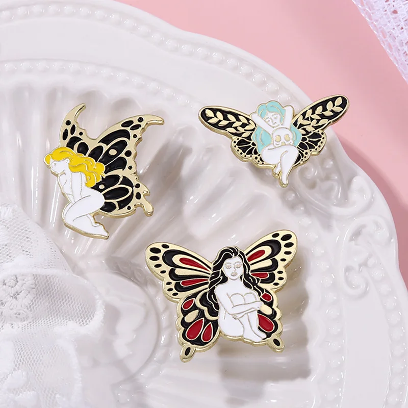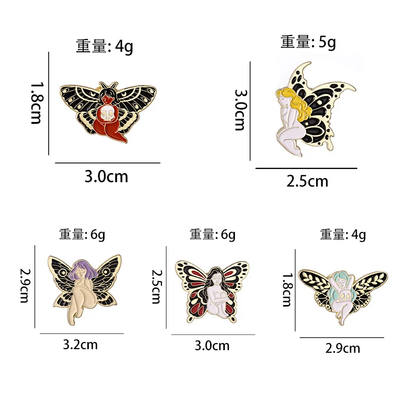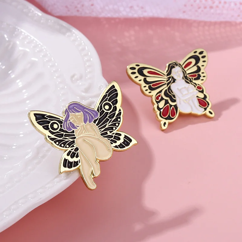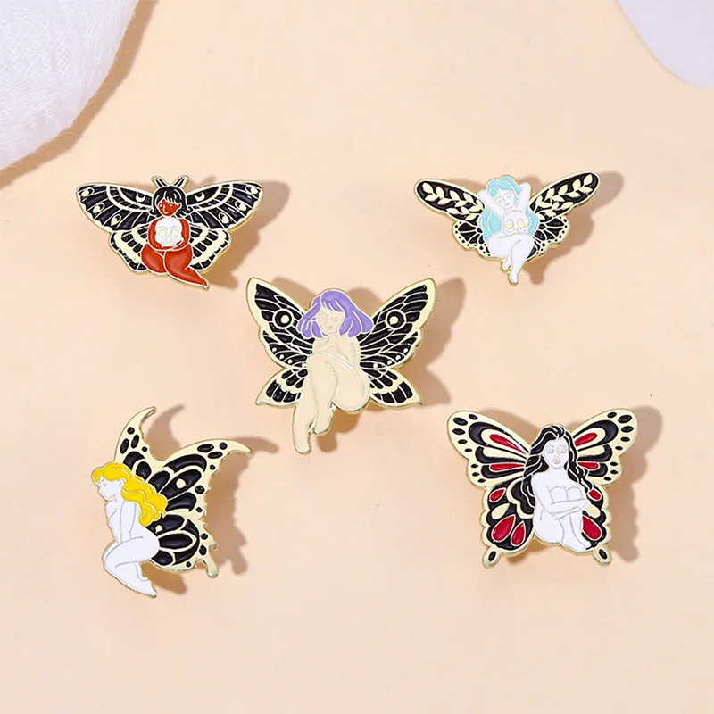 Insect Butterfly Cute Little Girl Sexy Woman Enamel Pin Brooch Fashion Clothes Ornament Badge Factory Wholesale