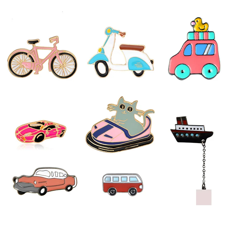 Bargain price Transportation Collection Enamel pin Cartoon bike car bus boat motorcycle Brooch lapel Button badge Funny Gift
