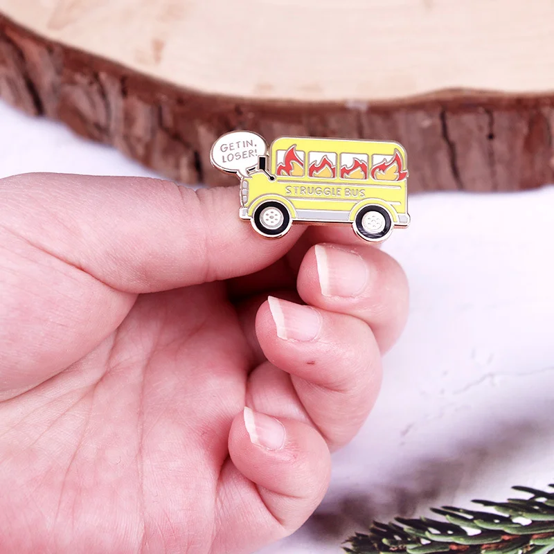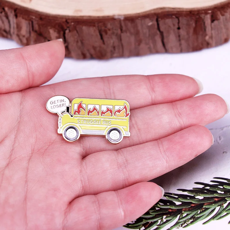 Burning Bus Badge Brooch Struggle Bus Enamel Pin GETIN. LOSER! Bus Car